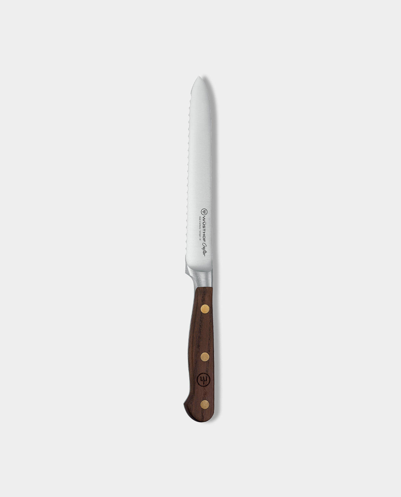 Für Brot, Käse, Wurst, Tomaten und Früchte. Dank Wellenschliff besonders geeignet für hartschalige Lebensmittel. Messerserie, die von traditionellen, geschickten Handwerkern inspiriert wurde. Entwickelt für den modernen Mann und die moderne Frau mit einer Leidenschaft für kunstvolles Handwerk. Dreifache Messingvernietung und ein voller Erl, um für erstklassige Haltbarkeit und Kontrolle zu sorgen. Die kräftig geräucherten Eichengriffe tragen das Wüsthof-Logo. Messer bitte nur von Hand spülen.