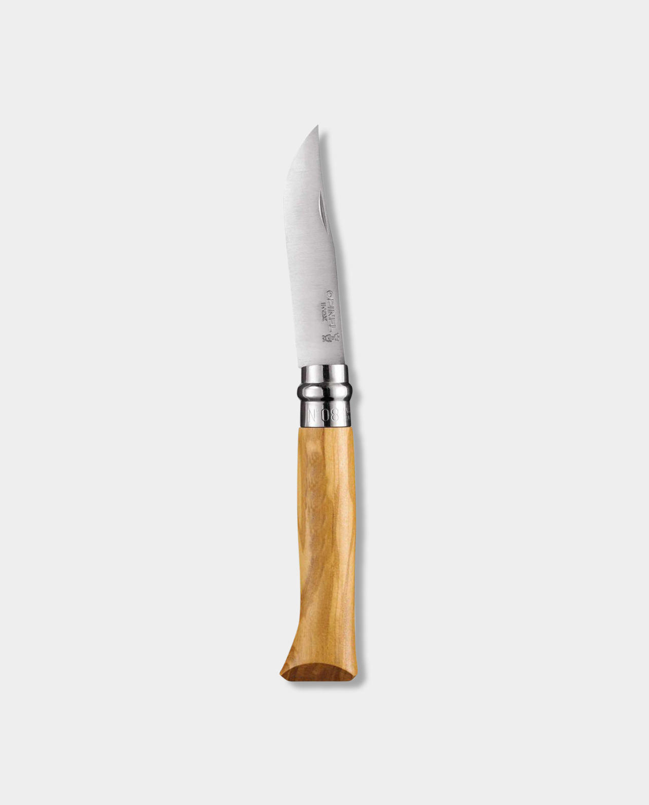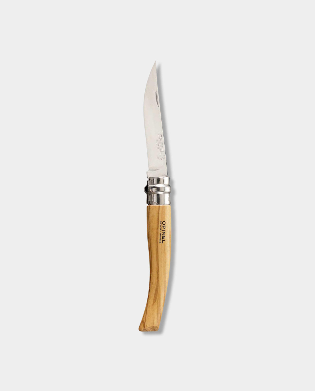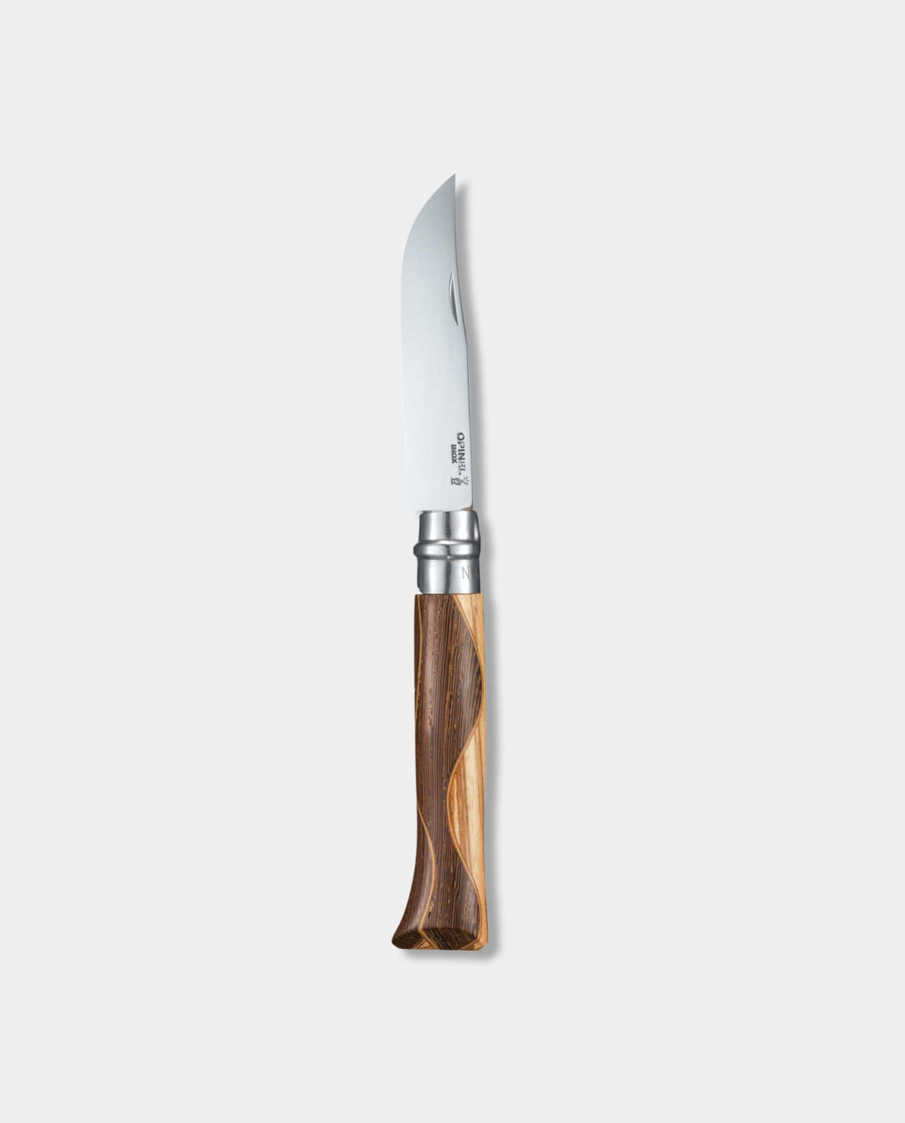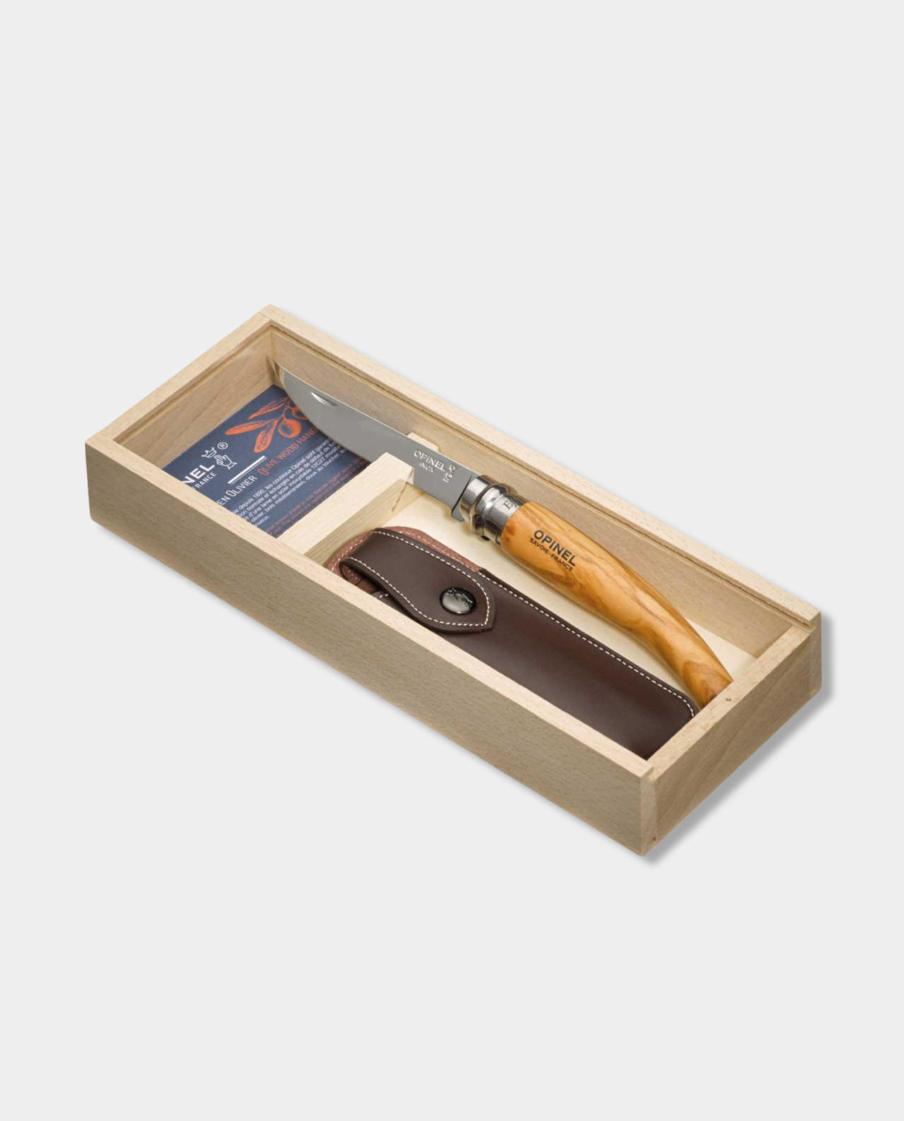 Ein Blickfang der besonderen Art. Dieses Opinel-Messer ist mit einem ergonomisch geformten Griff aus edlem Olivenholz gefertigt. Die schlanke Form des Griffes eignet sich ideal für schmale Hände. Die Klinge ist aus rostfreiem Hochleistungsstahl gefertigt und kann durch den für Opinel bekannten Sicherungsring arretiert werden.