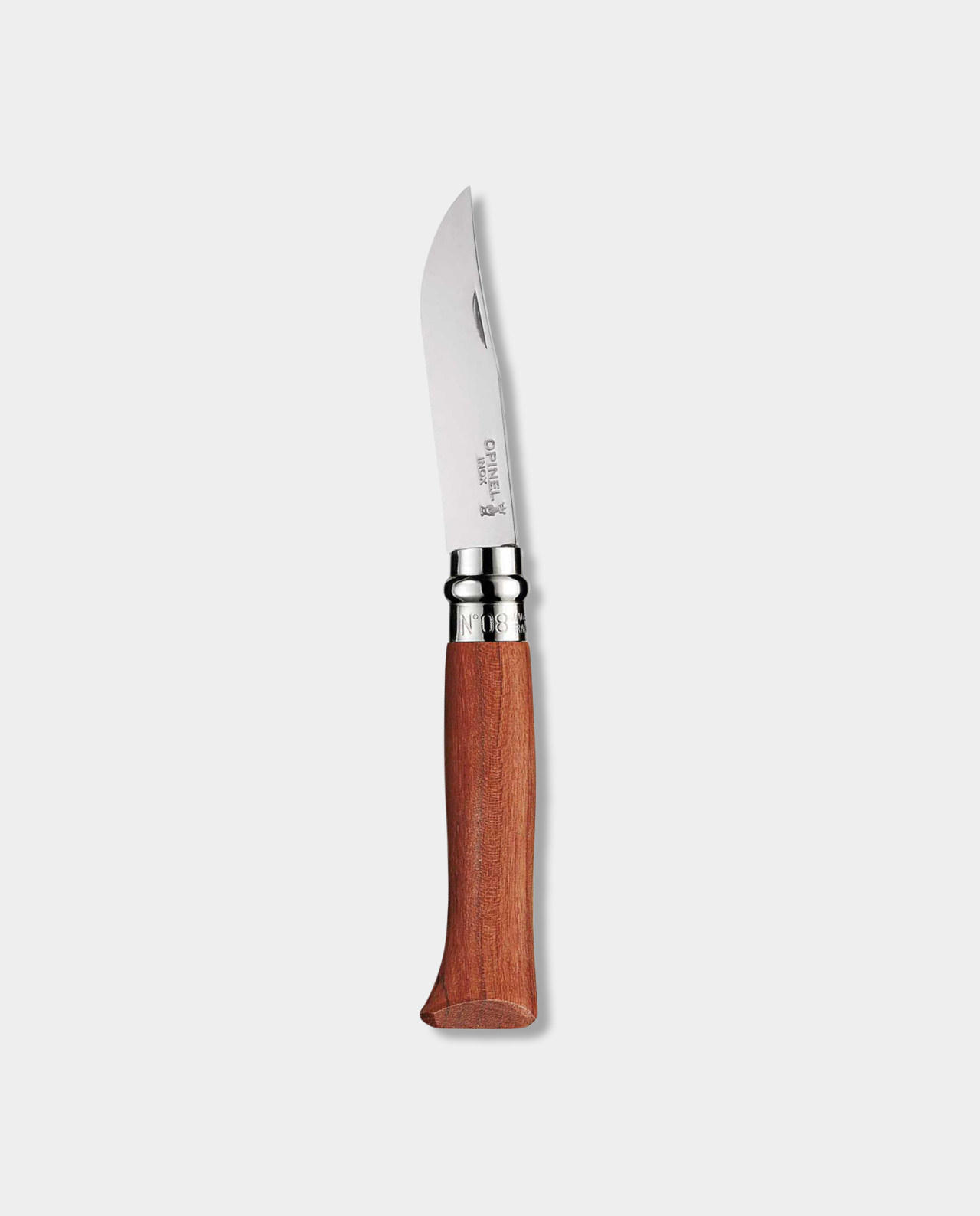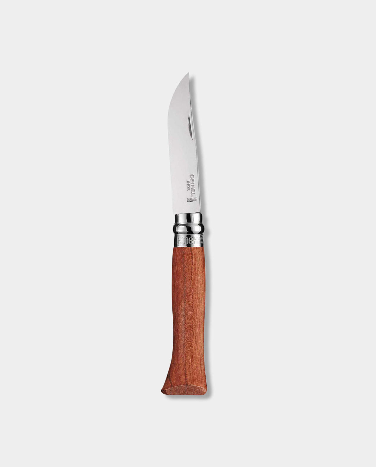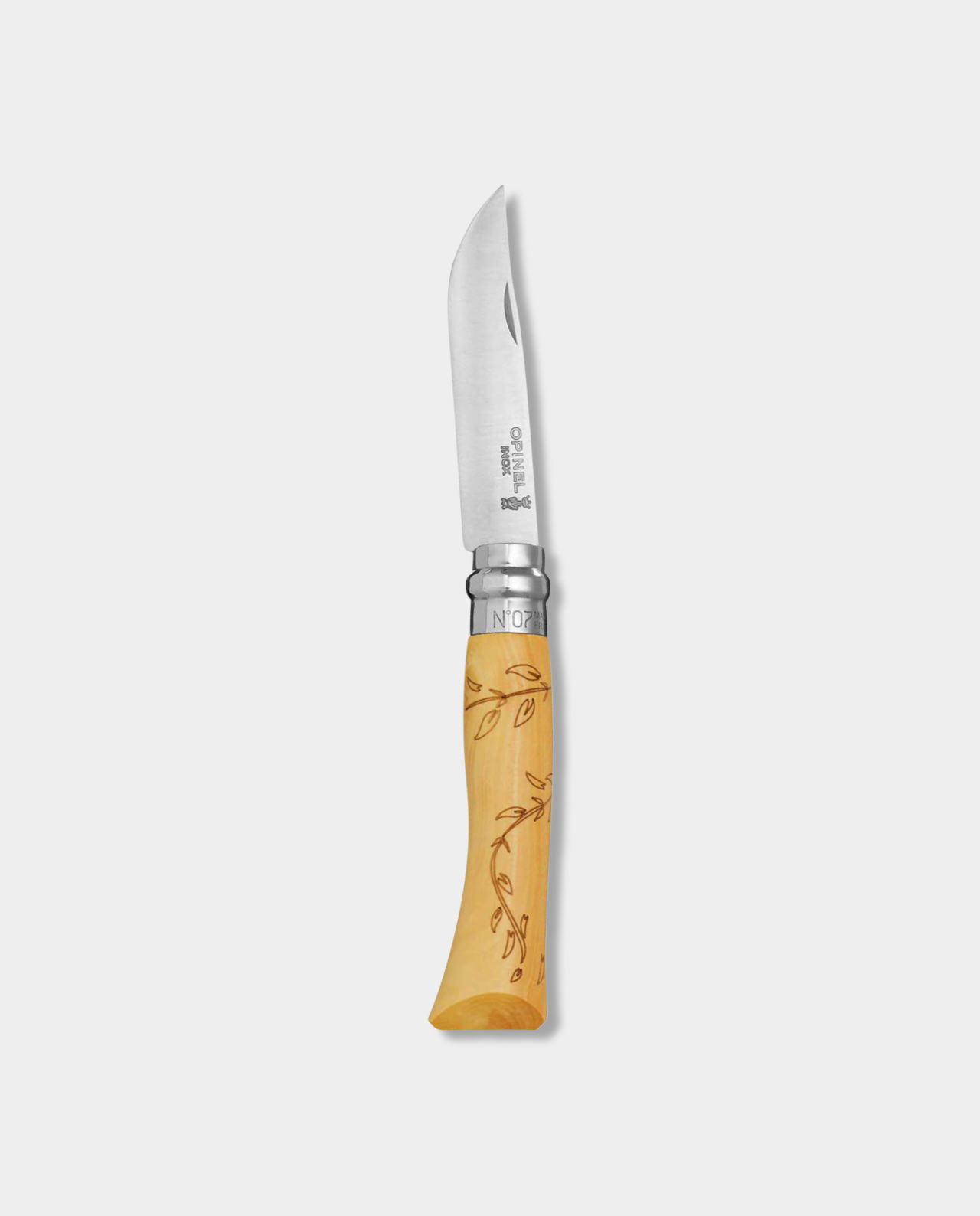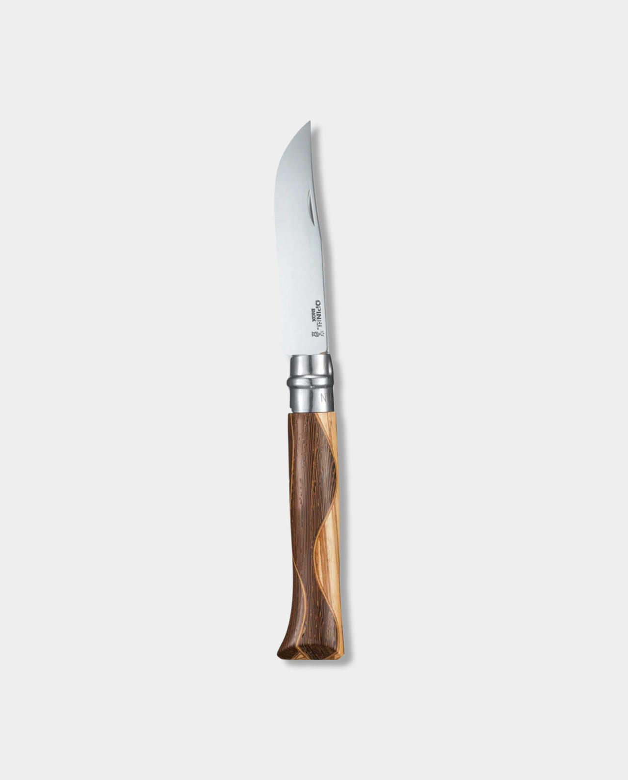Ein Blickfang der besonderen Art. Dieses Opinel-Messer ist mit einem ergonomisch geformten Griff aus edlem Olivenholz gefertigt. Die schlanke Form des Griffes eignet sich ideal für schmale Hände. Die Klinge ist aus rostfreiem Hochleistungsstahl gefertigt und kann durch den für Opinel bekannten Sicherungsring arretiert werden.