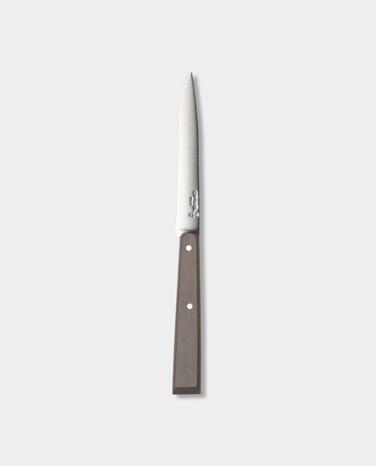 Tafelmesser aus der Opinel Messerserie Bon Appétit COUNTRYSIDE SPIRIT. Der Buchenholzgriff ist kombiniert mit einer Klinge aus rostfreiem Sandvik-Stahl 12C27. Damit die Qualität erhalten bleibt, sollte das Messer nur von Hand gereinigt werden. Grifffarbe: grau