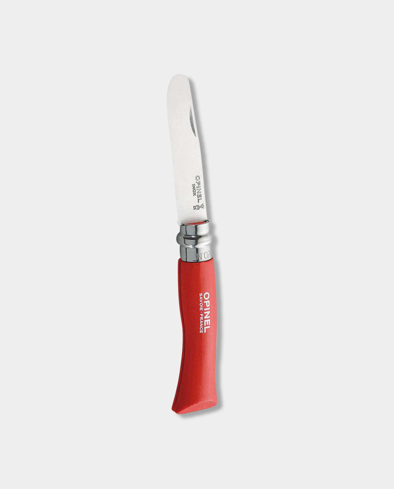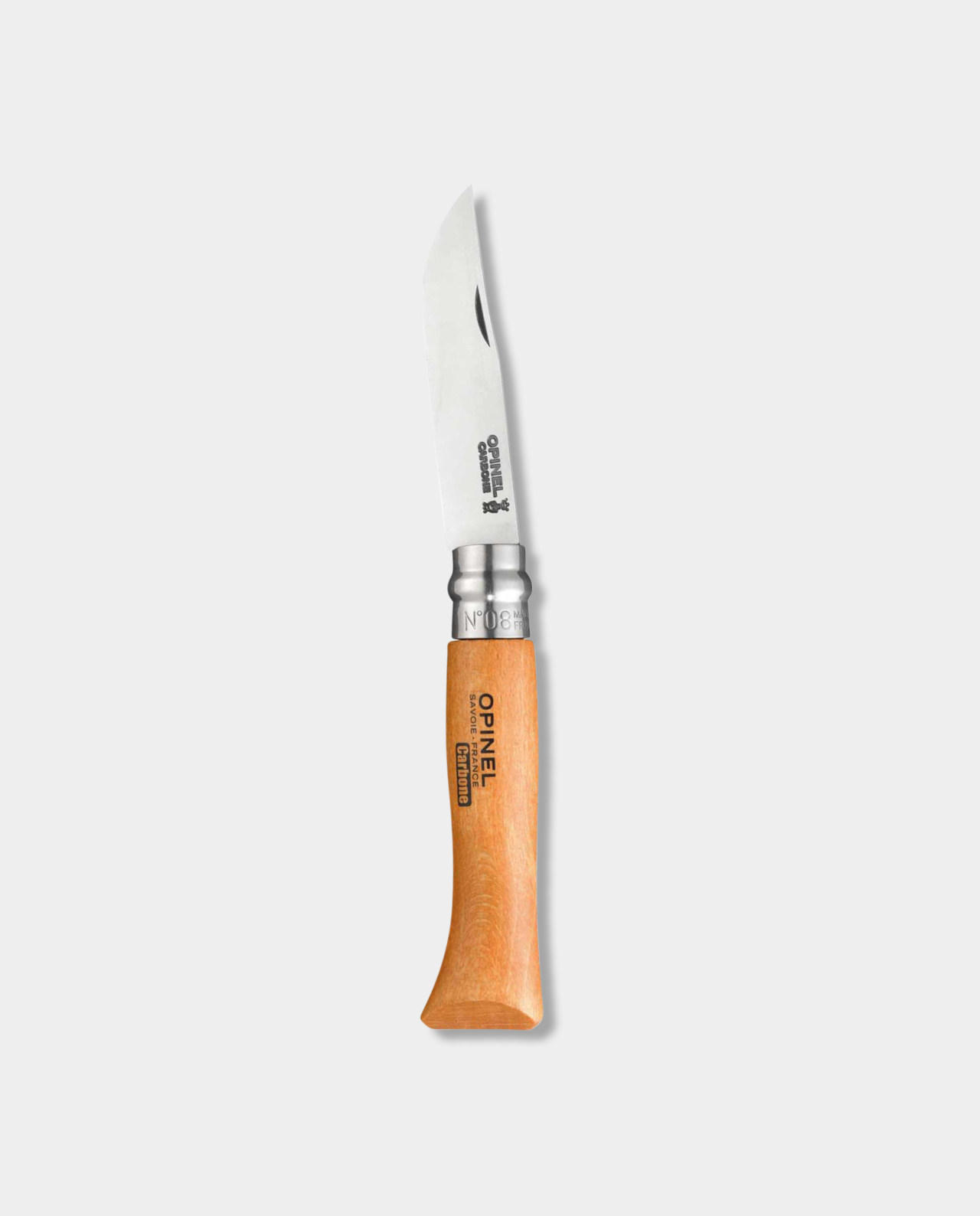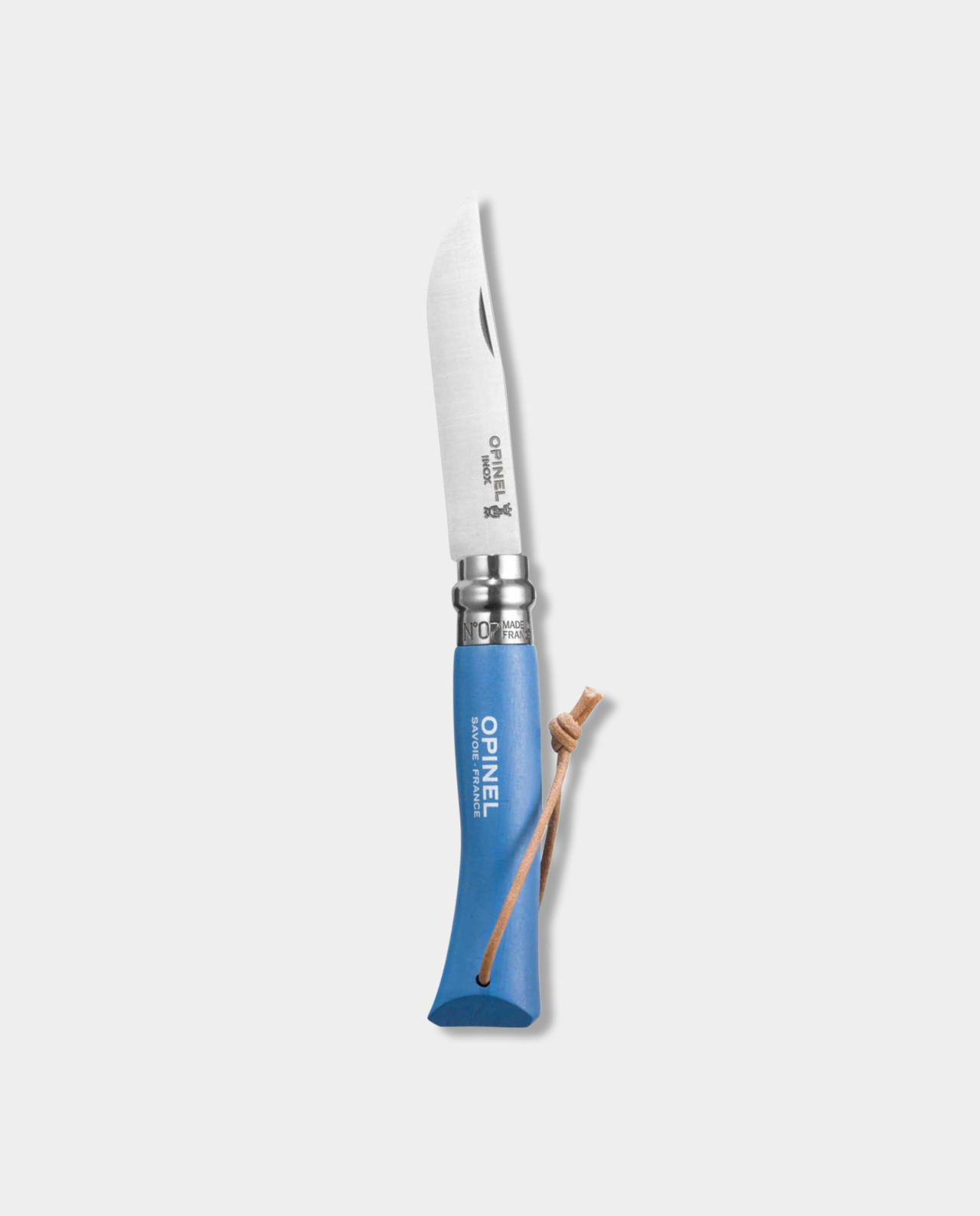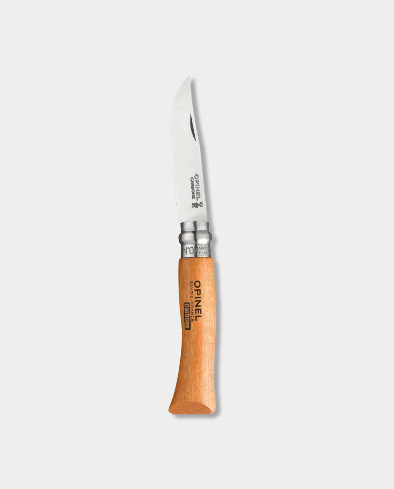 Opinel Mini-Messer mit einer Klinge aus nicht-rostfreiem XC90 Kohlenstoffstahl. Heft aus lackiertem Hartholz.