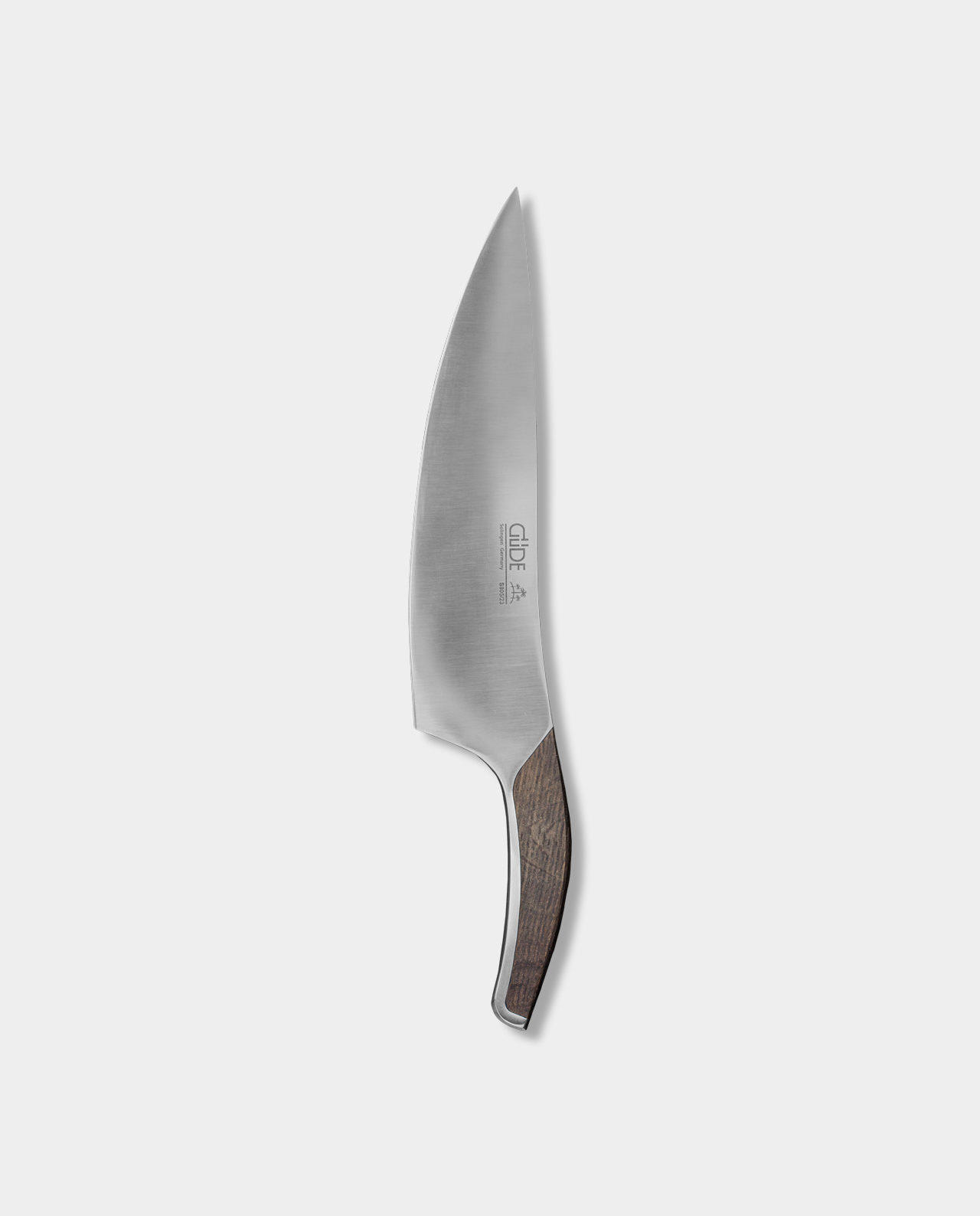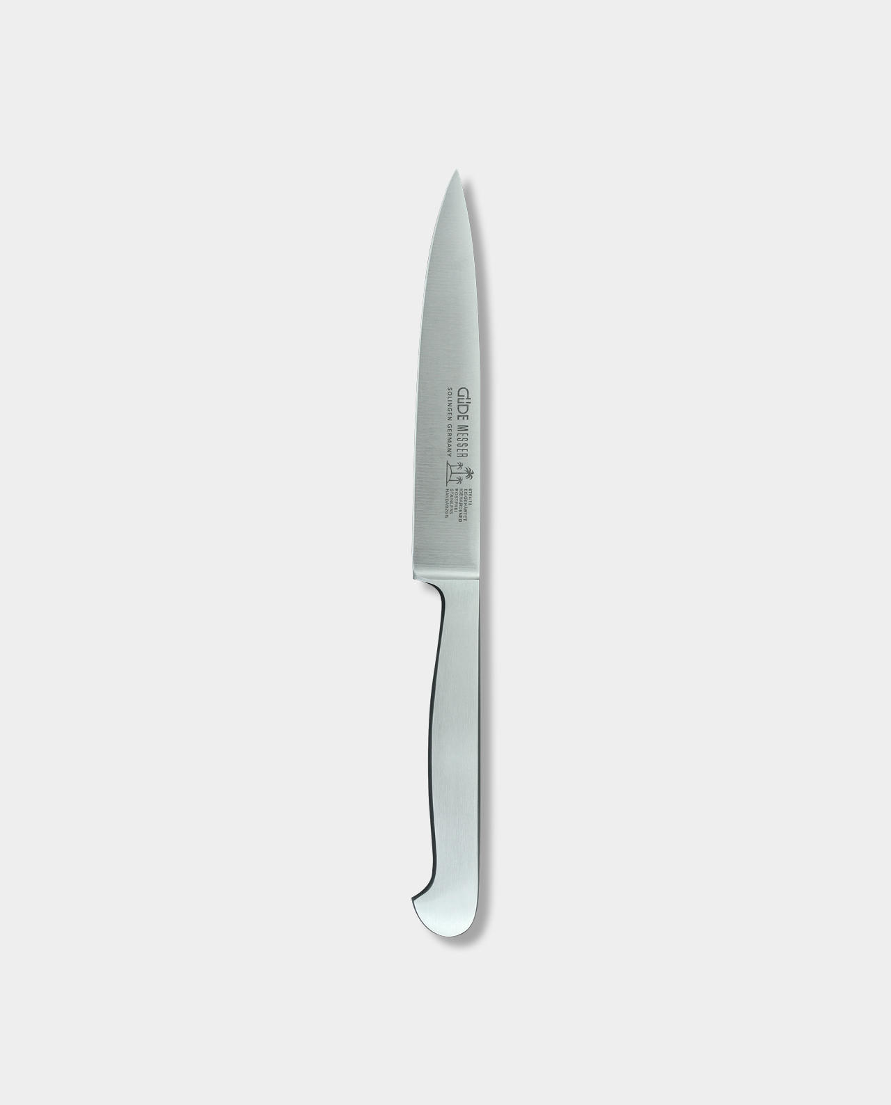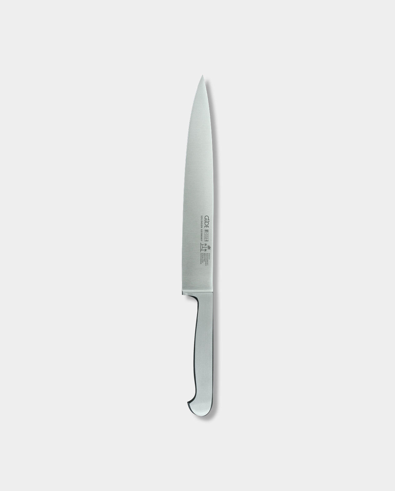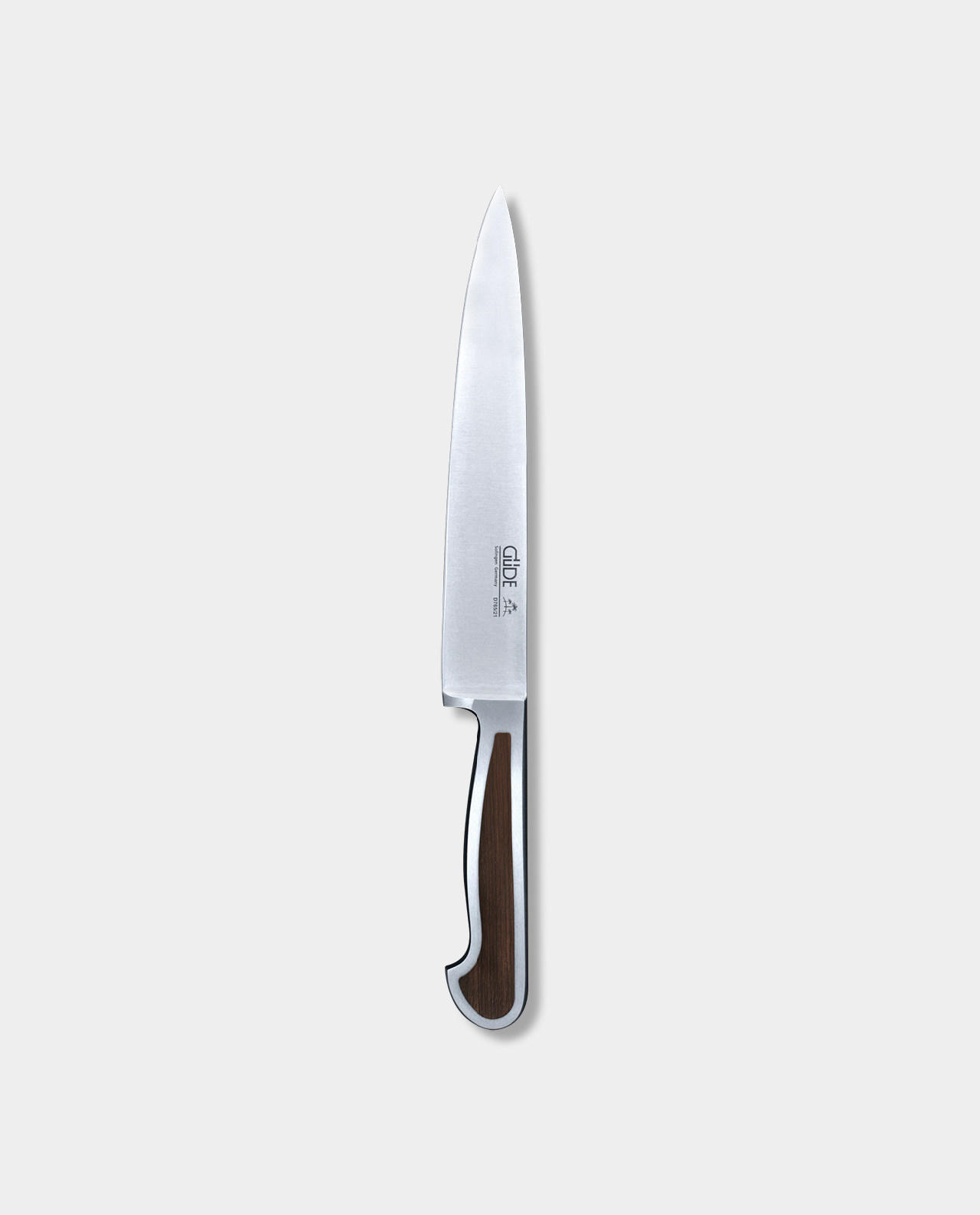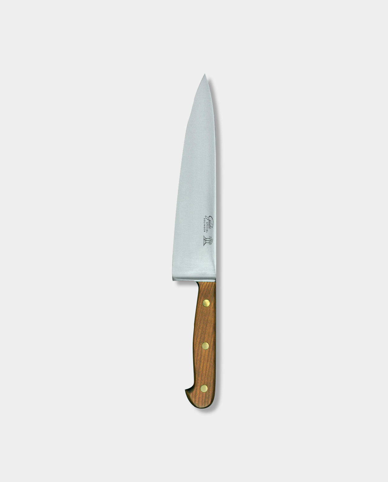 Der Klassiker und das Herzstück der professionellen Küche ist das Kochmesser mit seiner stabilen Klinge. Es ist der wichtigste Küchenhelfer für alle Gelegenheiten: zum Schneiden von Gemüse, Fleisch oder Fisch. Die geschwungene Klingenform erleichtert außerdem den Wiegeschnitt und ist damit ideal für die Verarbeitung von Kräutern und Zwiebeln.