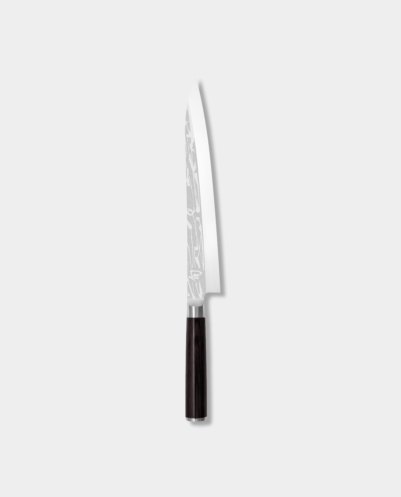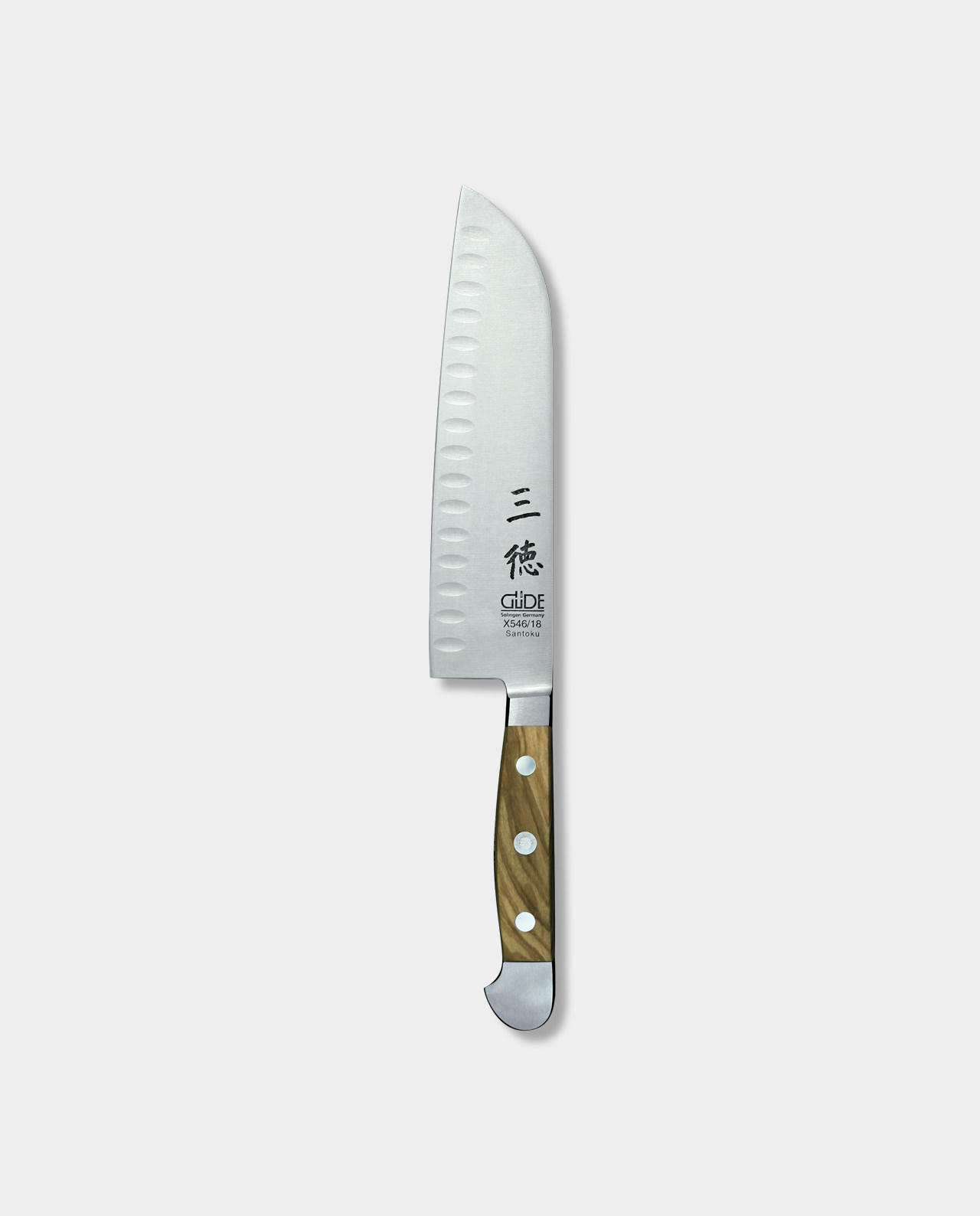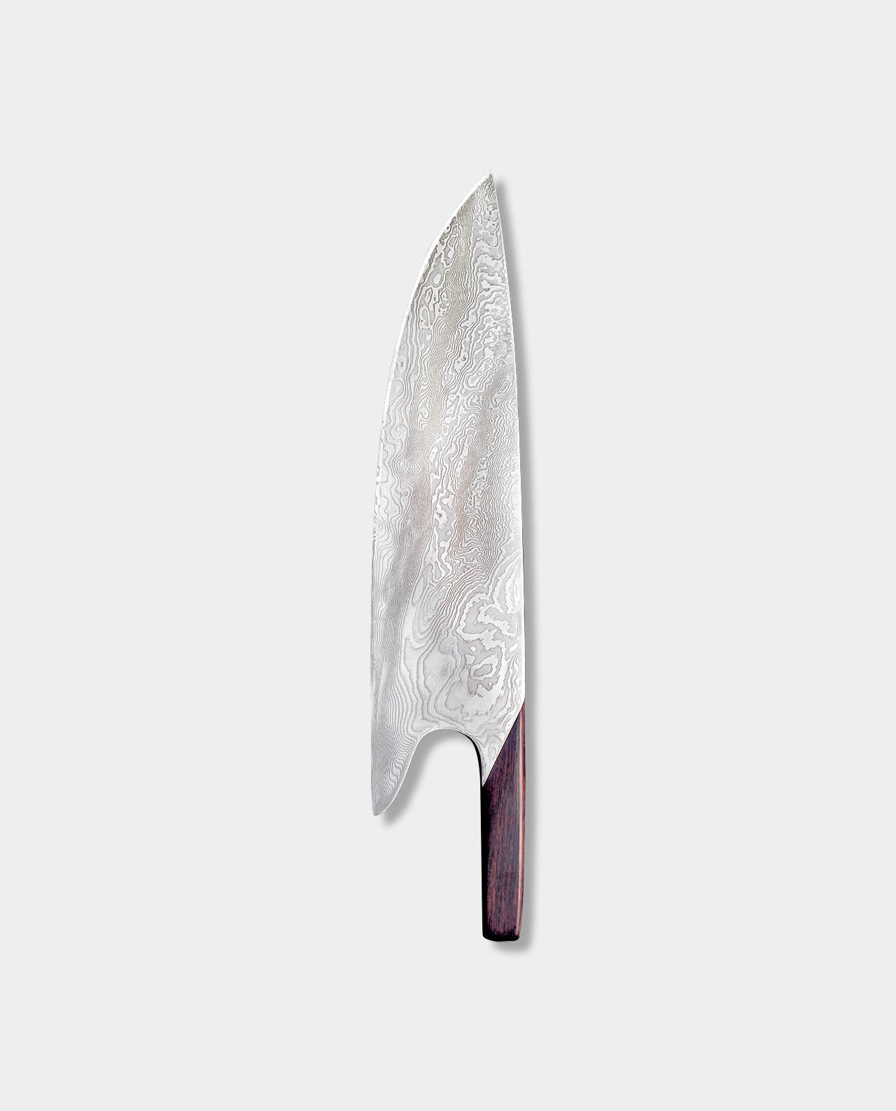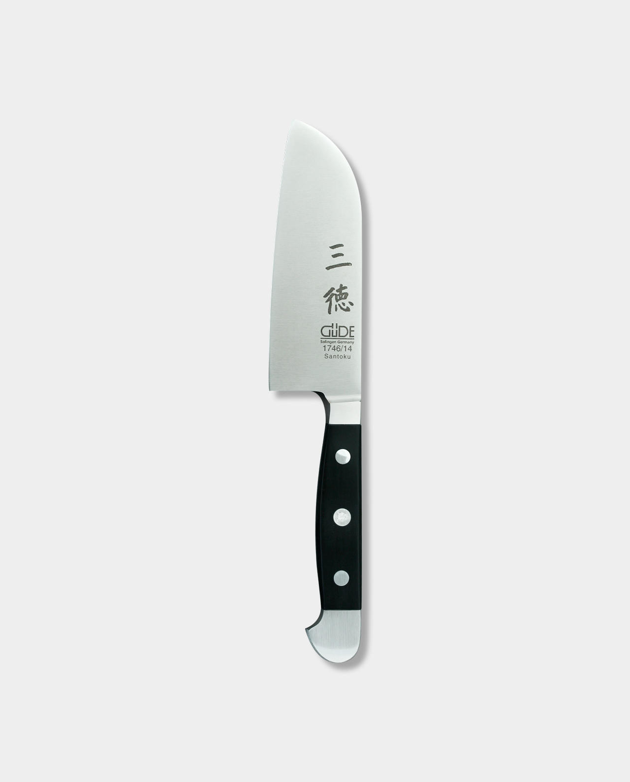 Diese traditionelle asiatische Klingenform ermöglicht einen vielseitigen Einsatz zum Schneiden von Fisch, Fleisch und Gemüse. Die eingeschliffenen Kullen erzeugen Luftpolster, die das Haften des Schneidguts minimieren und somit besonders feine Schnitte ermöglichen.