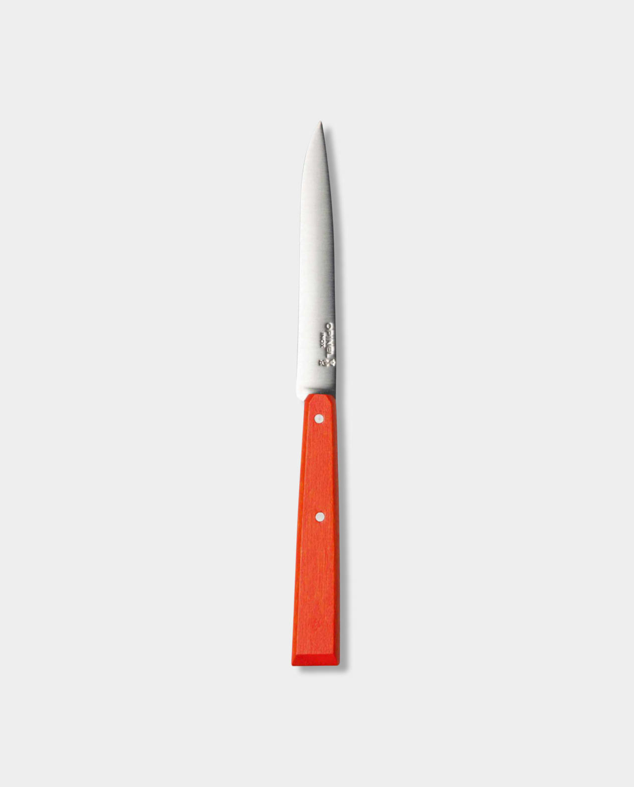 Tafelmesser aus der Opinel Messerserie Bon Appétit LOFT SPIRIT. Die rostfreie Klinge ist hergestellt aus dem bewährten Sandvik-Stahl 12C27. Damit die Qualität erhalten bleibt, sollte das Messer nur von Hand gereinigt werden. Grifffarbe: rot
