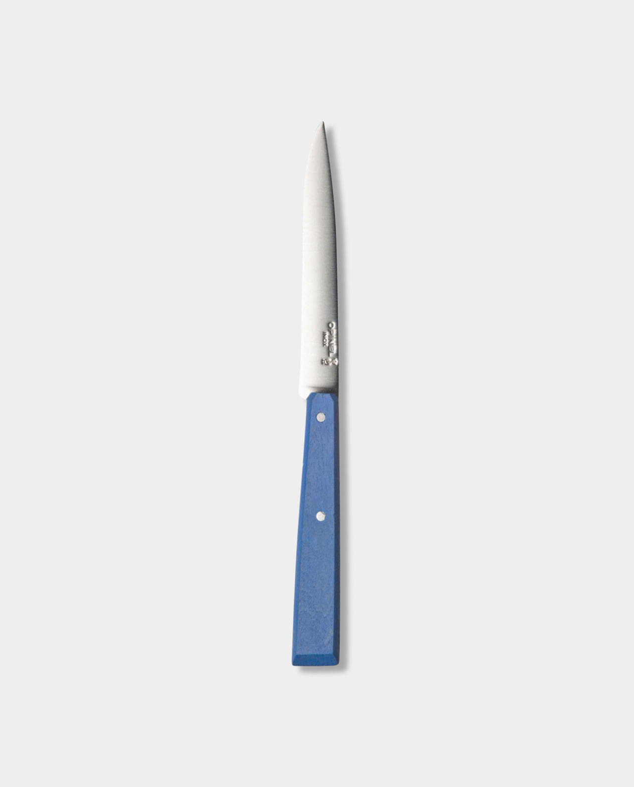 Tafelmesser aus der Opinel Messerserie Bon Appétit COUNTRYSIDE SPIRIT. Der Buchenholzgriff ist kombiniert mit einer Klinge aus rostfreiem Sandvik-Stahl 12C27. Damit die Qualität erhalten bleibt, sollte das Messer nur von Hand gereinigt werden. Grifffarbe: blau