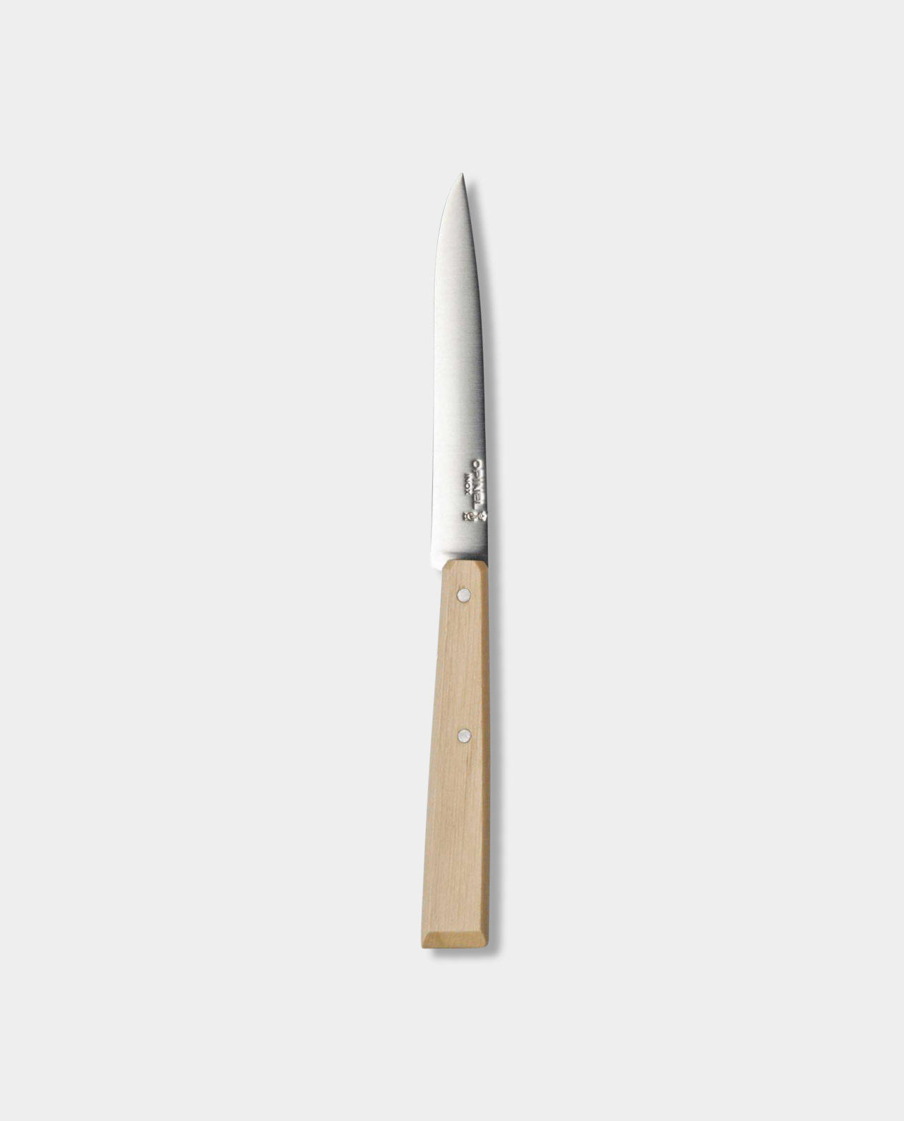 Tafelmesser aus der Opinel Messerserie Bon Appétit LOFT SPIRIT. Die rostfreie Klinge ist hergestellt aus dem bewährten Sandvik-Stahl 12C27. Damit die Qualität erhalten bleibt, sollte das Messer nur von Hand gereinigt werden. Grifffarbe: natur