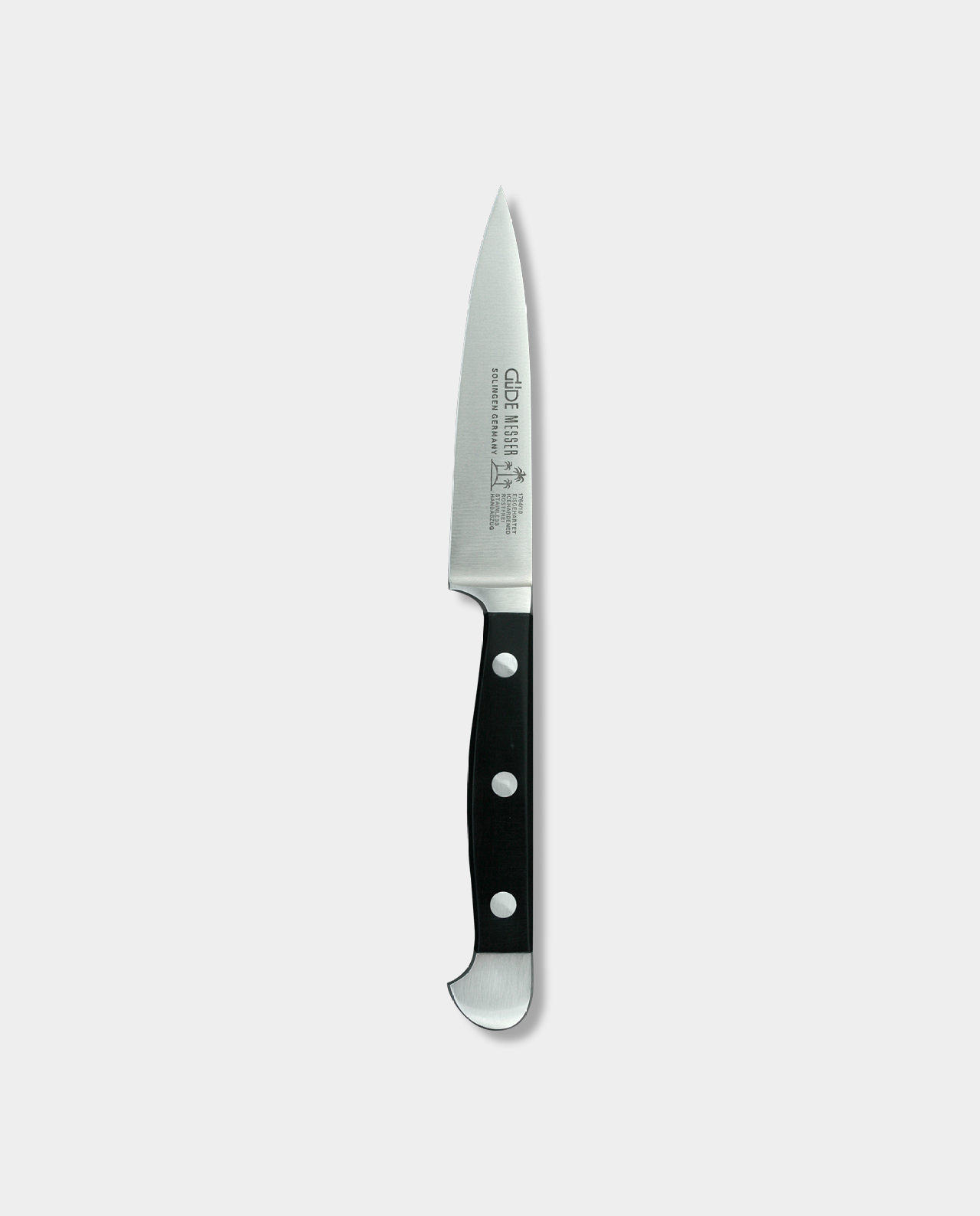 Mit dem Officemesser aus der 1905 Serie bietet Dick einen praktischen Allzweckhelfer für die Küche an. Kurz, wendig und scharf – ein unentbehrliches und vielseitiges Werkzeug in jeder Küche, ganz gleich ob für Schälarbeiten, kleine Schneidarbeiten oder kunstvolle Verzierungen.