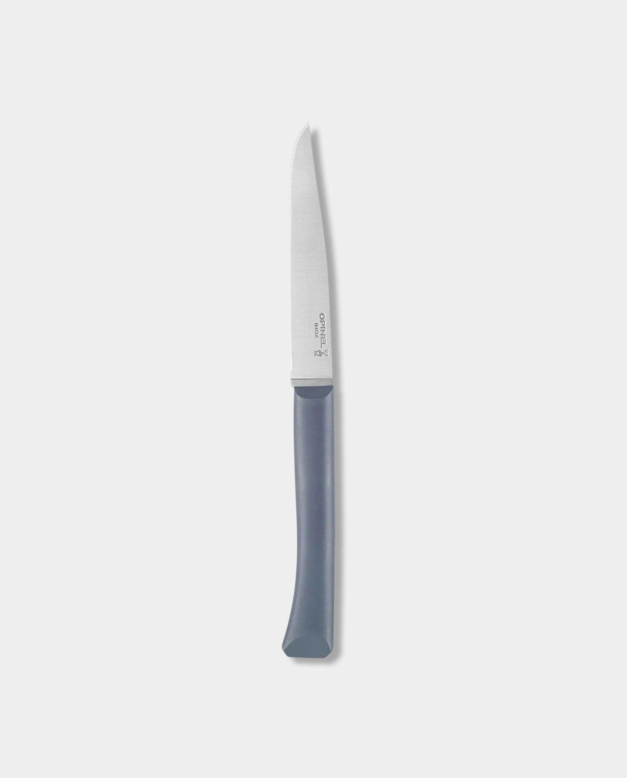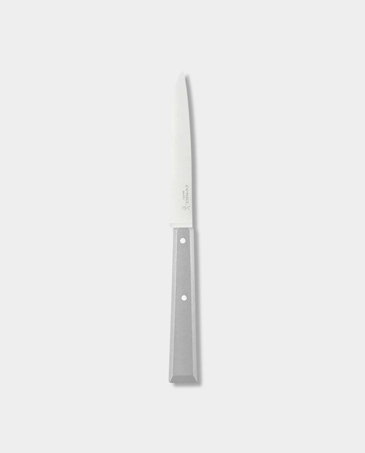 Tafelmesser aus der Opinel Messerserie Bon Appétit LOFT SPIRIT. Die rostfreie Klinge ist hergestellt aus dem bewährten Sandvik-Stahl 12C27. Damit die Qualität erhalten bleibt, sollte das Messer nur von Hand gereinigt werden. Grifffarbe: grau