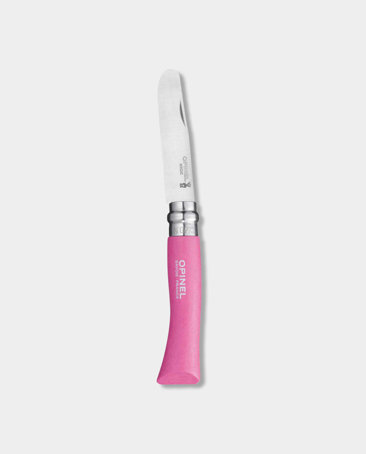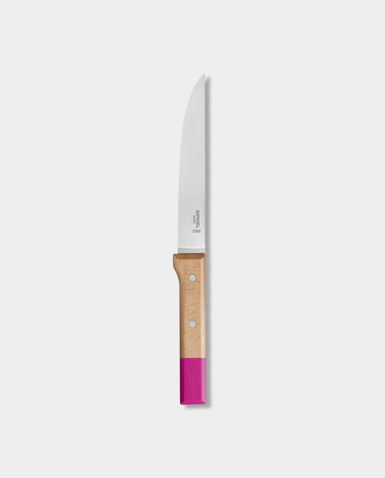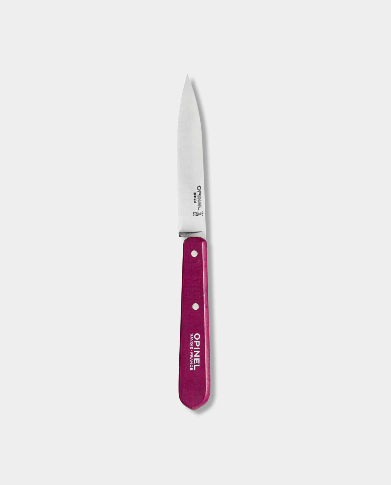 Tafelmesser aus der Opinel Messerserie Bon Appétit POP SPIRIT. Die 11 cm lange, glatte Klinge ist aus rostfreiem Stahl 12C27 gefertigt. Damit die Qualität erhalten bleibt, sollte das Messer nur von Hand gereinigt werden. Grifffarbe: pink