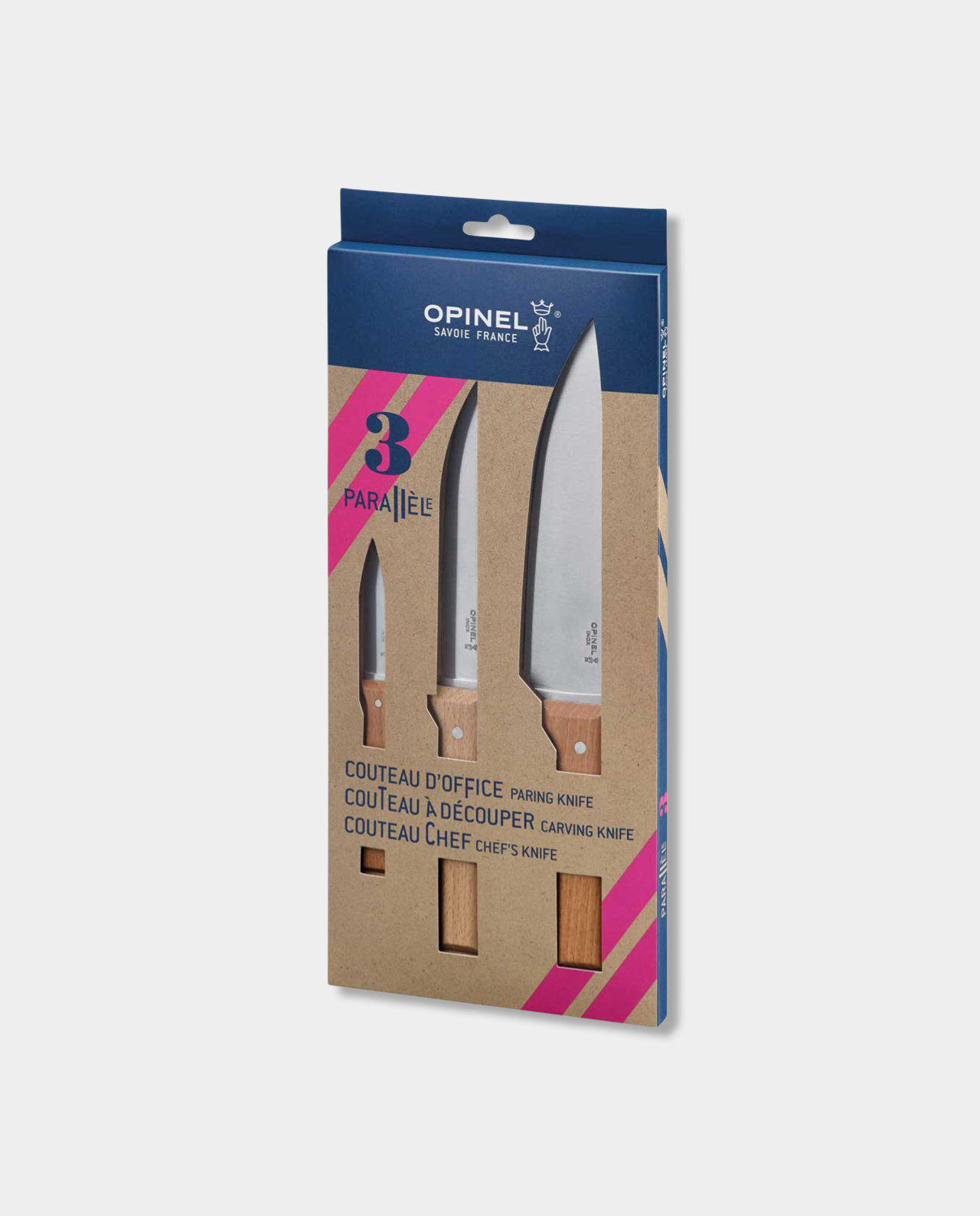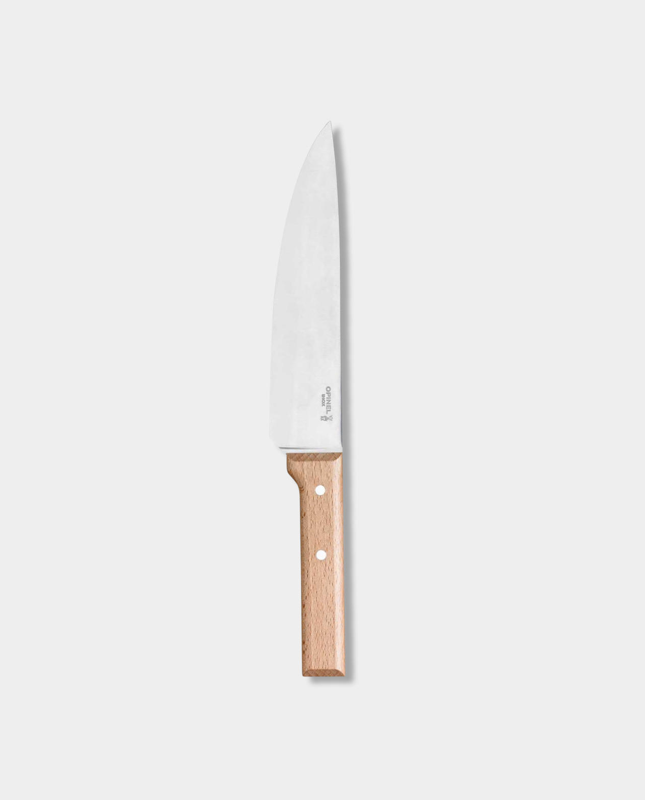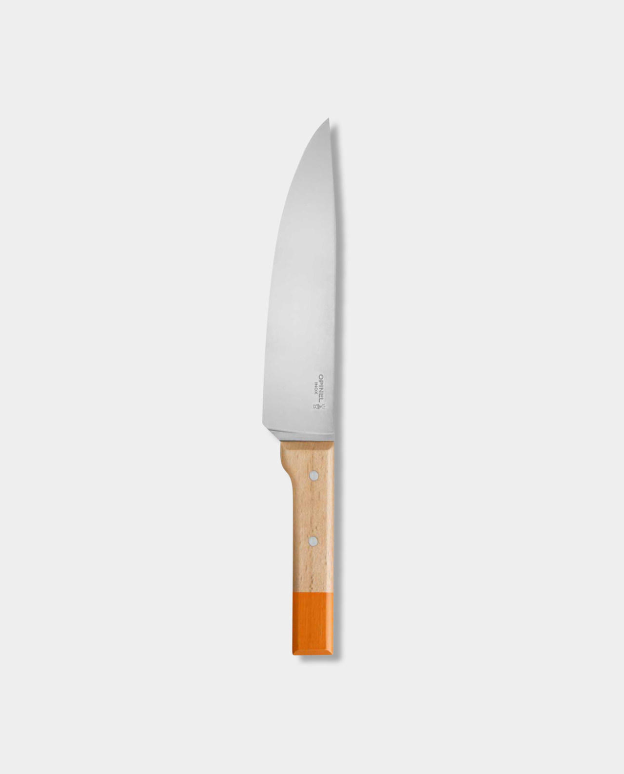 Opinel, bekannt seit Jahrzehnten für Taschenmesser, besinnt sich auf seine Ursprünge und präsentiert mit der Parallele POP Collection eine neue Küchenmesser-Serie. Fehlen darf natürlich nicht ein Chefmesser mit einer rostfreien, 3 mm starken und 20 cm langen Klinge. Der Griff ist aus robustem Buchenholz, mit farbigem Akzent, gefertigt.