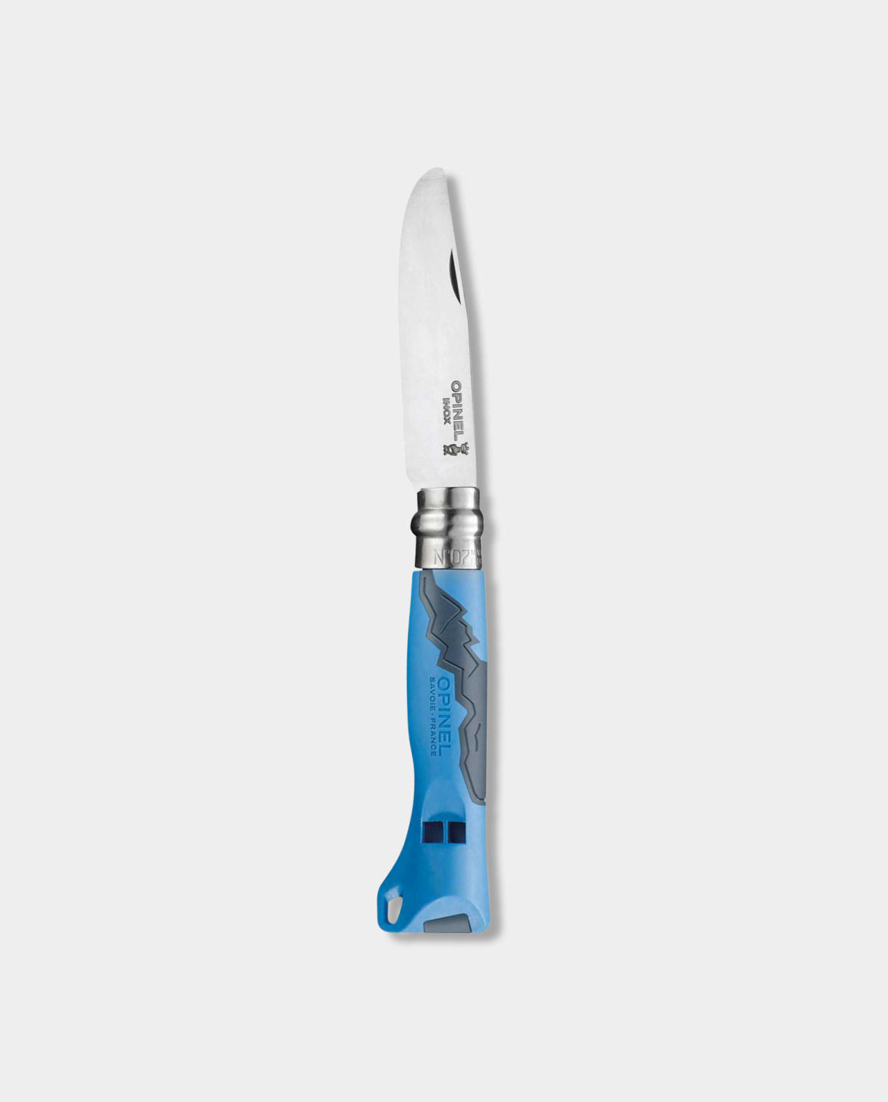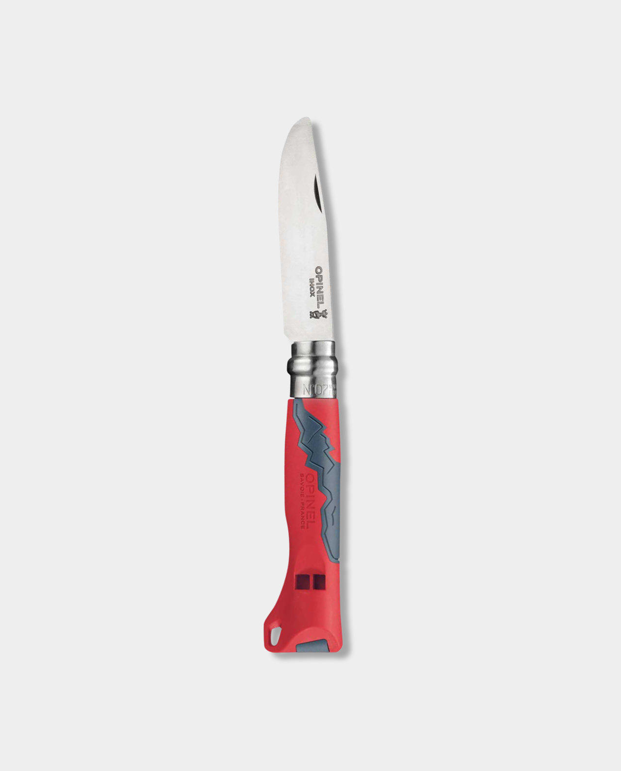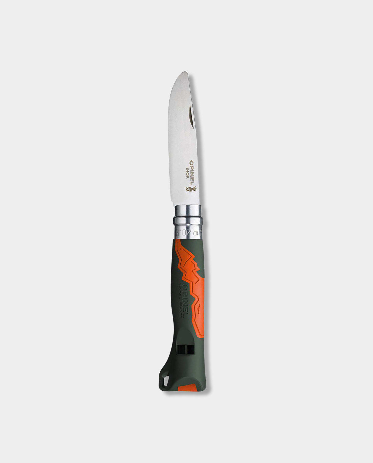 Mit dem Opinel No. 8 Outdoor präsentiert der französische Hersteller ein robustes, vielseitig einsetzbares Taschenmesser. Für die Klinge wird ein 2,5 mm starker, rostfreier Sandvik-Stahl 12C27 verwendet. Die mit Teilsägezahnung und Schäkelöffner ausgestattete Klinge wird durch das bewährte Virobloc-System sicher arretiert. Der orange-graue Griff aus einer Polyamid-/Fiberglas-Kombination präsentiert sich in der ergonomischen Form der Opinel-Messer. In den Griff ist eine Signalpfeife integriert mit der sich ein weithin hörbarer Ton erzeugen lässt. Eine Kunststoff-Kordel ermöglicht das Befestigen des Messers an vielen Stellen.