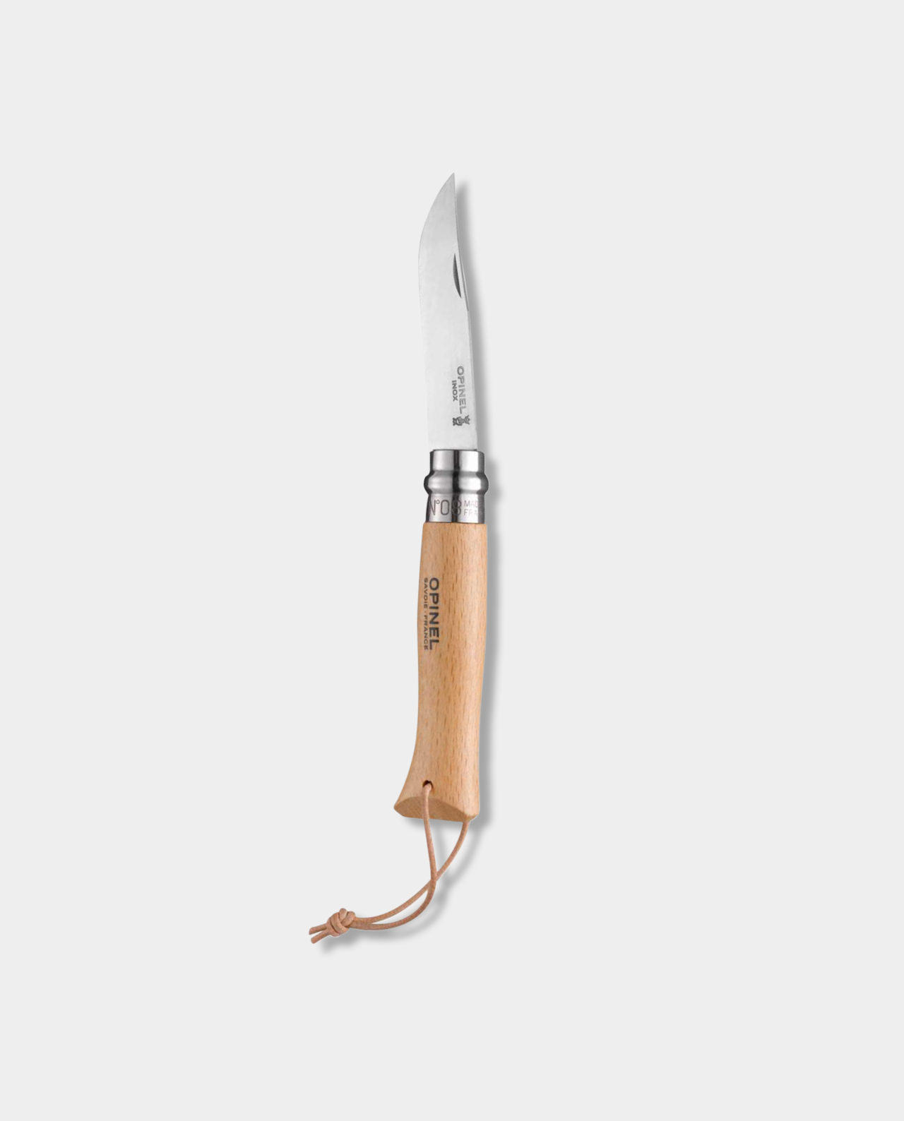 Das Opinel-Messer aus der stilvollen Slim-Line-Serie überzeugt mit einem Griff aus sauber verarbeitetem Buchenholz. Die Klinge aus rostfreiem Edelstahl lässt sich über das für Opinel typische Virobloc-System zuverlässig feststellen. Opinel-Größe 8.