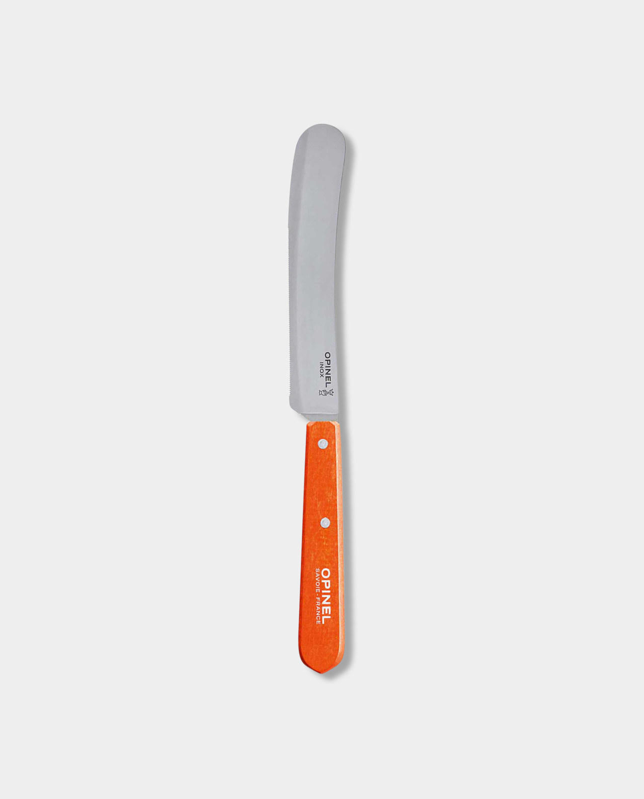 Tafelmesser aus der Opinel Messerserie Bon Appétit POP SPIRIT. Die 11 cm lange, glatte Klinge ist aus rostfreiem Stahl 12C27 gefertigt. Damit die Qualität erhalten bleibt, sollte das Messer nur von Hand gereinigt werden. Grifffarbe: orange