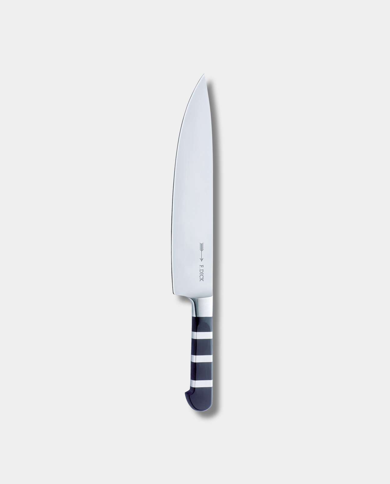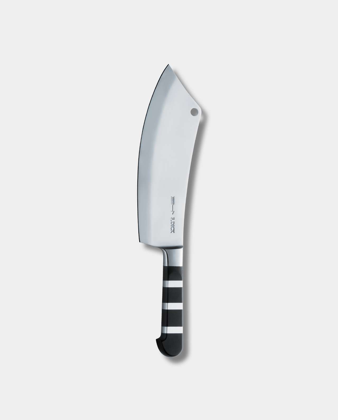 Die Klingenform geht auf die historische Form eines Spalters zurück, ein bewährtes Werkzeug für Fleischer und Metzger. Wie kaum ein anderes Messer macht das Kochmesser AJAX Lust auf Kochen und Grillen. Die imposante 22 cm lange Klinge gleitet durch Fleisch wie durch Butter und macht auch vor kleinen Knochen keinen Halt. Ob Fleisch, Geflügel, Obst oder Gemüse – das AJAX ist ein absoluter Alleskönner. Die geschwungene Messerschneide ermöglicht den Wiegeschnitt, mit dem feines Tatar aber auch Kräuter mühelos geschnitten werden können. Dank des praktischen Lochs in der Messerklinge kann das Messer aufgehängt und damit sicher verstaut werden. Seinen Namen verdankt dieses besondere Messer „Aias“ (zu Deutsch Ajax), dem griechischen Haupthelden des trojanischen Krieges. Bei der Entwicklung dieser einzigartigen Klinge diente ein über 100 Jahre alter Spalter als Vorbild, den Friedr. Dick damals für Metzger und Fleischer im Sortiment hatte. Diese traditionelle Form gepaart mit modernem Design und höchster Qualität überzeugt: bereits beim ersten Arbeiten mit dem Messer imponiert das besondere Gewicht, die überragende Schärfe und die hochwertige Verarbeitung.