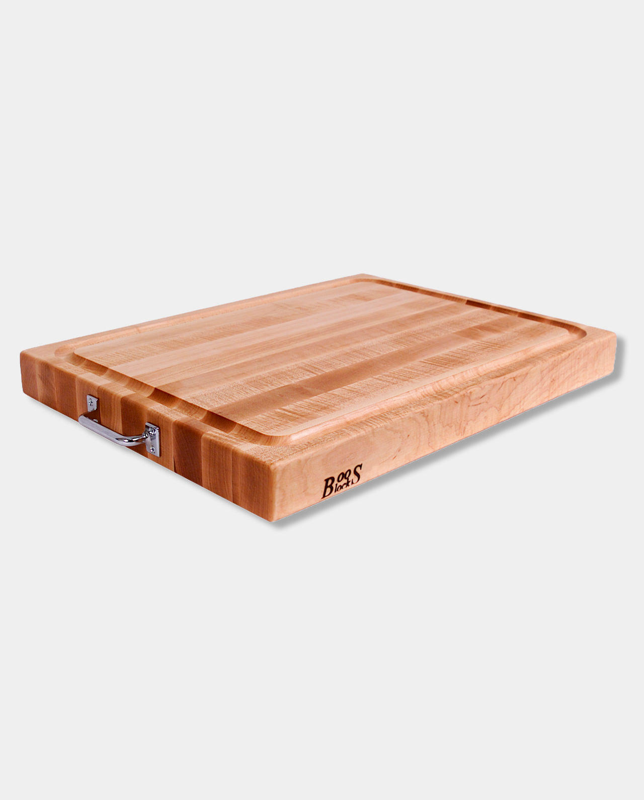 Schneidebrett, Langholz, beidseitig benutzbar mit Saftrille und Edelstahlgriffen, Nordamerikanisches Ahorn-Hartholz, NSF zertifiziert, 61 x 46 x 6 cm; 11 kg