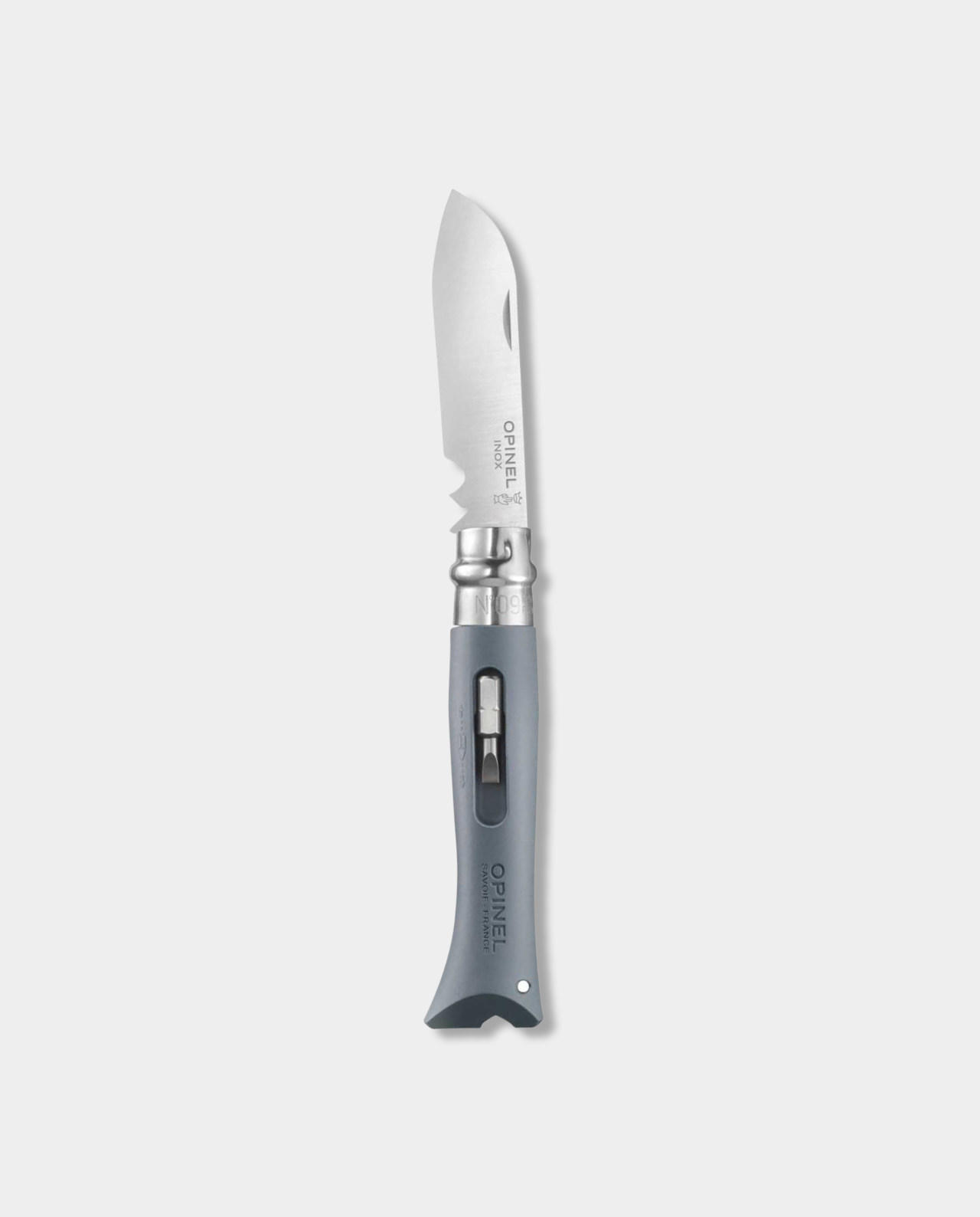 Opinel erweitert mit dem multifunktionalen Messer OPINEL No. 9 DIY sein erfolgreiches Sortiment. Das Messer ist die ideale Ergänzung im Werkzeugkoffer, im PKW oder auch im Büro. Das Messer verfügt über eine robuste 8 cm lange Klinge aus modifiziertem Sandvik 12C27 Stahl, die an der Klingenbasis durch einen Abisolierer und einen Fadenschneider ergänzt wurde. Die Klinge wird durch den Virobloc-Sicherheitsring arretiert. Der graue Griff des OPINEL No. 9 DIY aus glasfaserverstärktem Polyamid beherbergt in zwei Griffaussparungen je ein Bit für Schlitzkopf- und Kreuzschlitzschrauben. Damit kann das Messer als Schraubendreher verwendet werden, indem das passende Bit in den am Griffende angebrachten magnetischen Bithalter eingesetzt wird. Verwendet werden handelsübliche Bits.