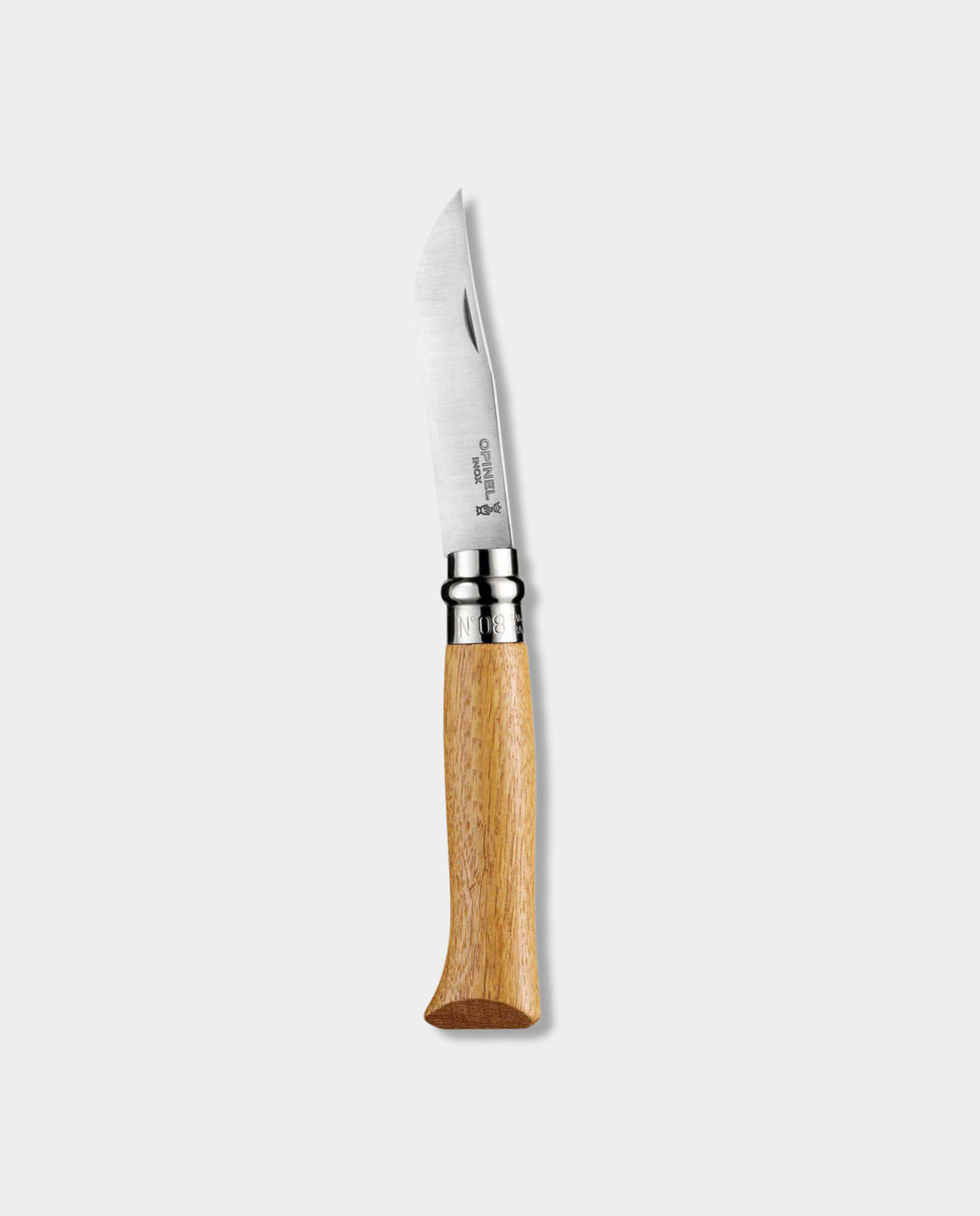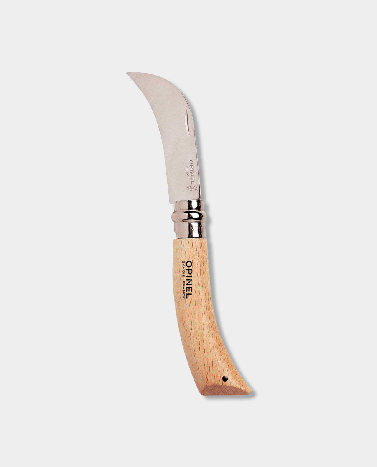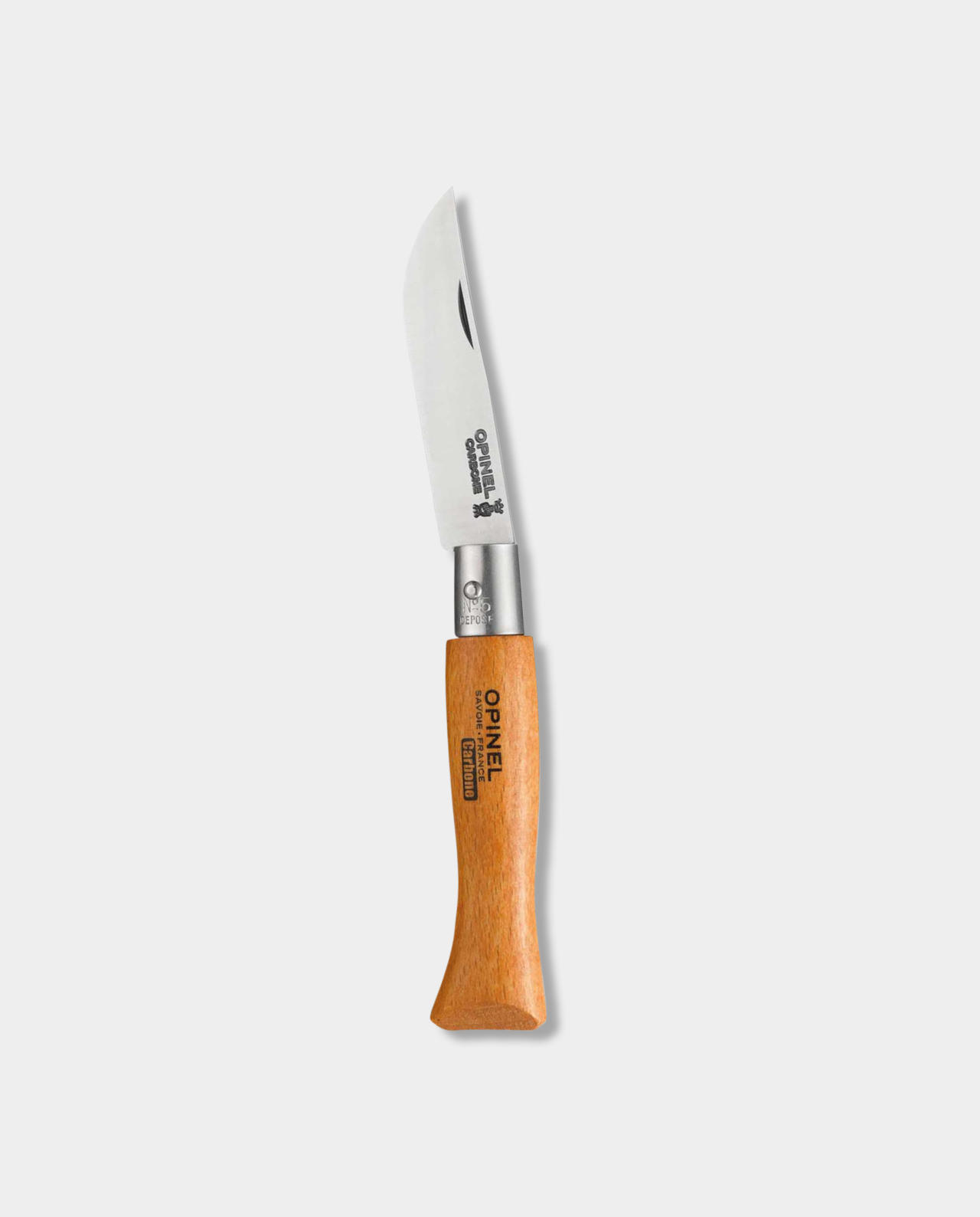 Dieses Messer wurde von Opinel eigens für das Sammeln und die Vorbereitung von Pilzen entwickelt. Mit der feinen, gekrümmten Sandvik-Edelstahlklinge mit gezahntem Rücken können Pilze problemlos gehäutet werden. Am Ende des Griffes aus naturfarbenem, lackiertem Buchenholz befindet sich eine Bürste aus Wildschweinborsten, mit deren Hilfe man leicht Erdreste von den Pilzen abbürsten kann.