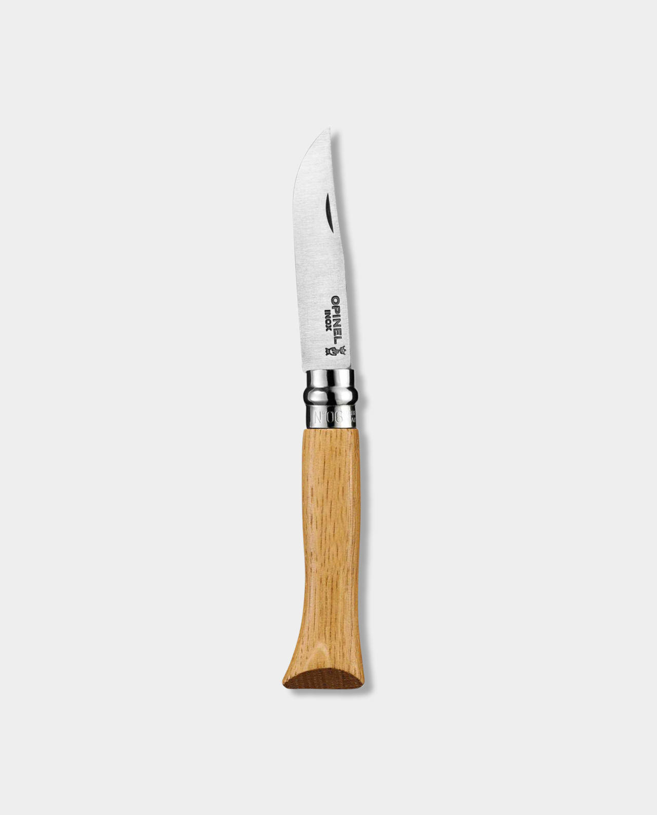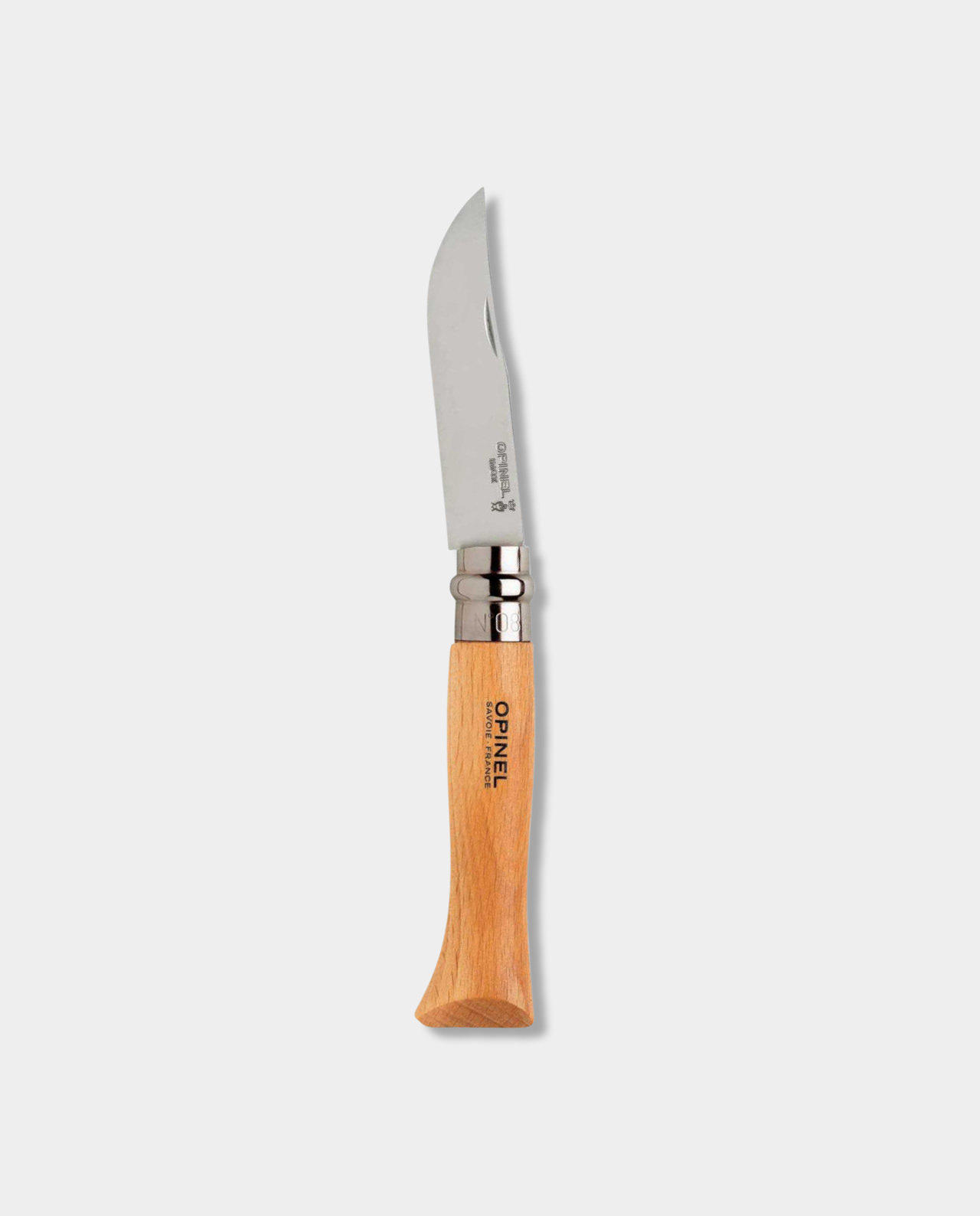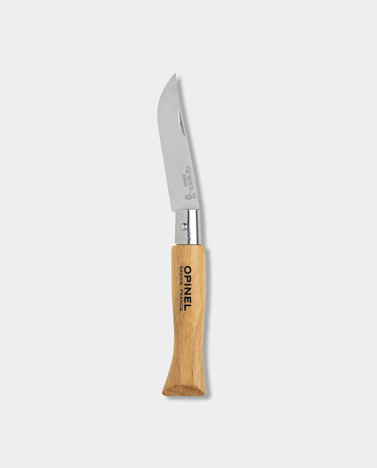 Dieses Messer wurde von Opinel eigens für das Sammeln und die Vorbereitung von Pilzen entwickelt. Mit der feinen, gekrümmten Sandvik-Edelstahlklinge mit gezahntem Rücken können Pilze problemlos gehäutet werden. Am Ende des Griffes aus naturfarbenem, lackiertem Buchenholz befindet sich eine Bürste aus Wildschweinborsten, mit deren Hilfe man leicht Erdreste von den Pilzen abbürsten kann.