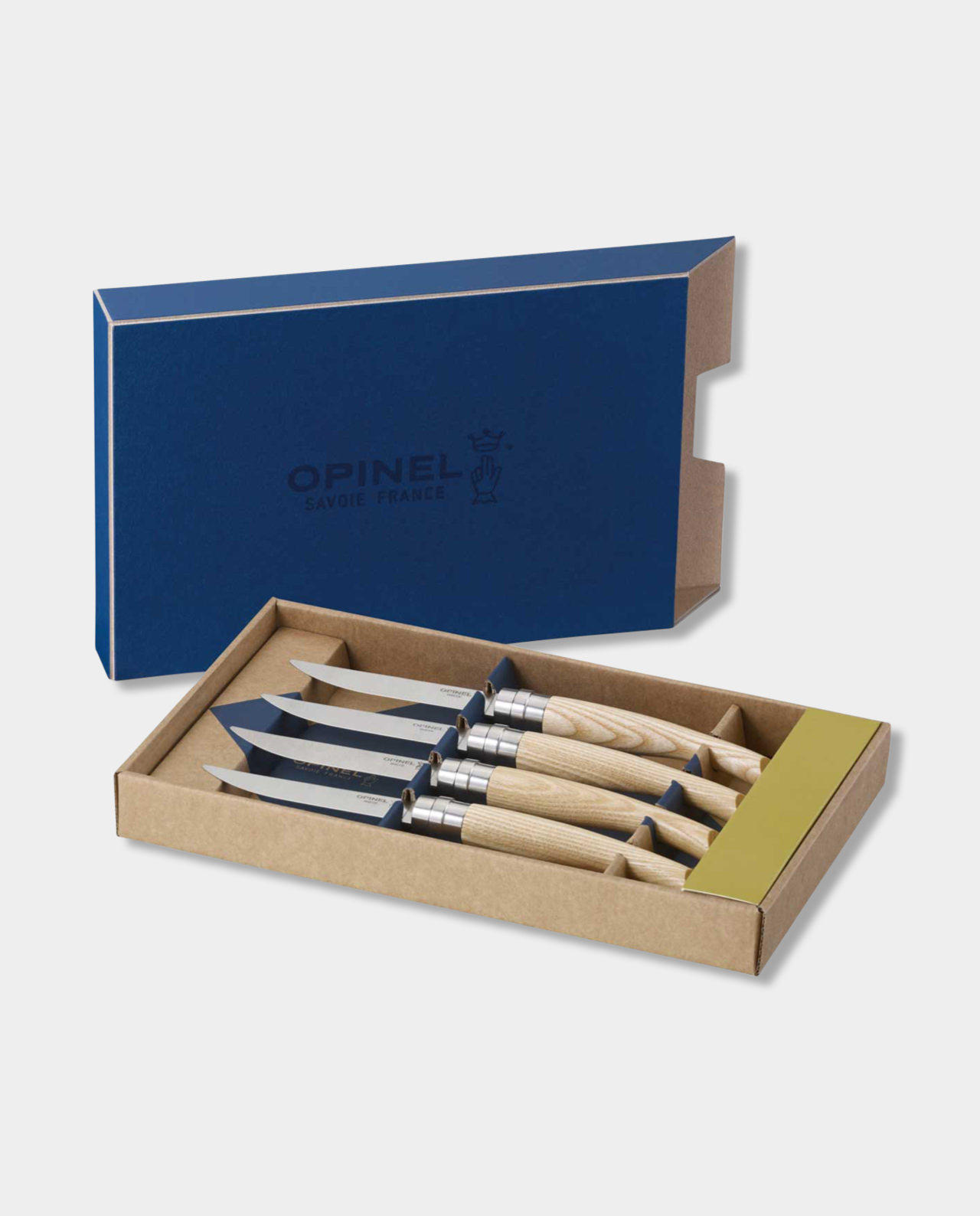 Das vielseitig einsetzbare Eschenholz findet nun auch Einzug bei Opinel in Form von Griffen für die Serie Table Chic. In Kombination mit einer Klinge aus rostfreiem Edelstahl ist dieses Tafelmesser nicht nur zuverlässig, sondern auch attraktiv im Design. Die schlanke, der Slim Line Kollektion ähnelnde Form, liegt beim Schneiden sicher in der Hand. Die Lieferung erfolgt in einer 4-teiligen Geschenkbox.