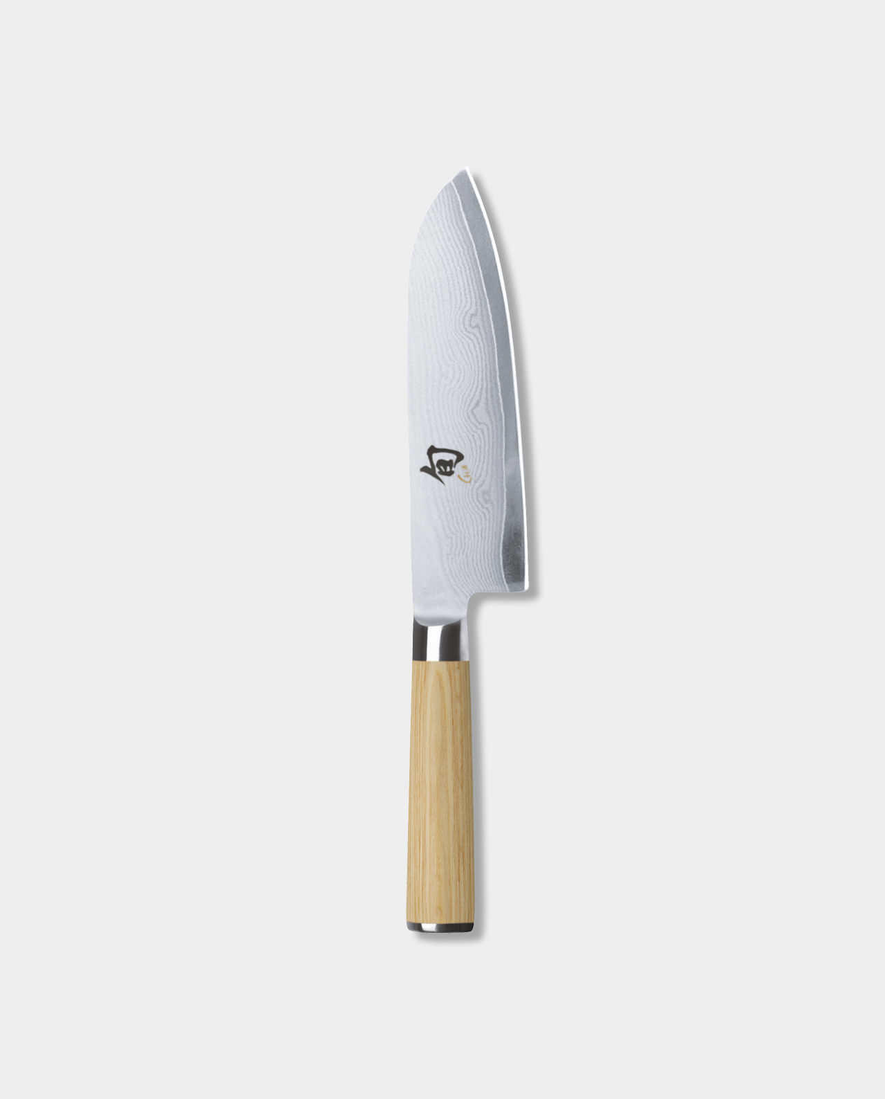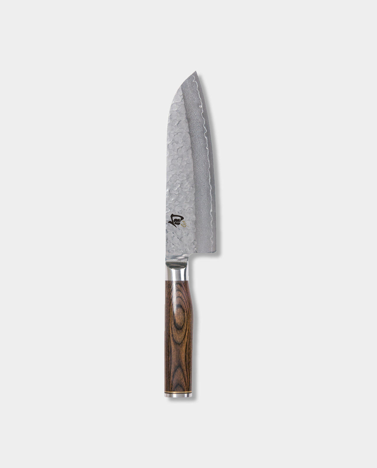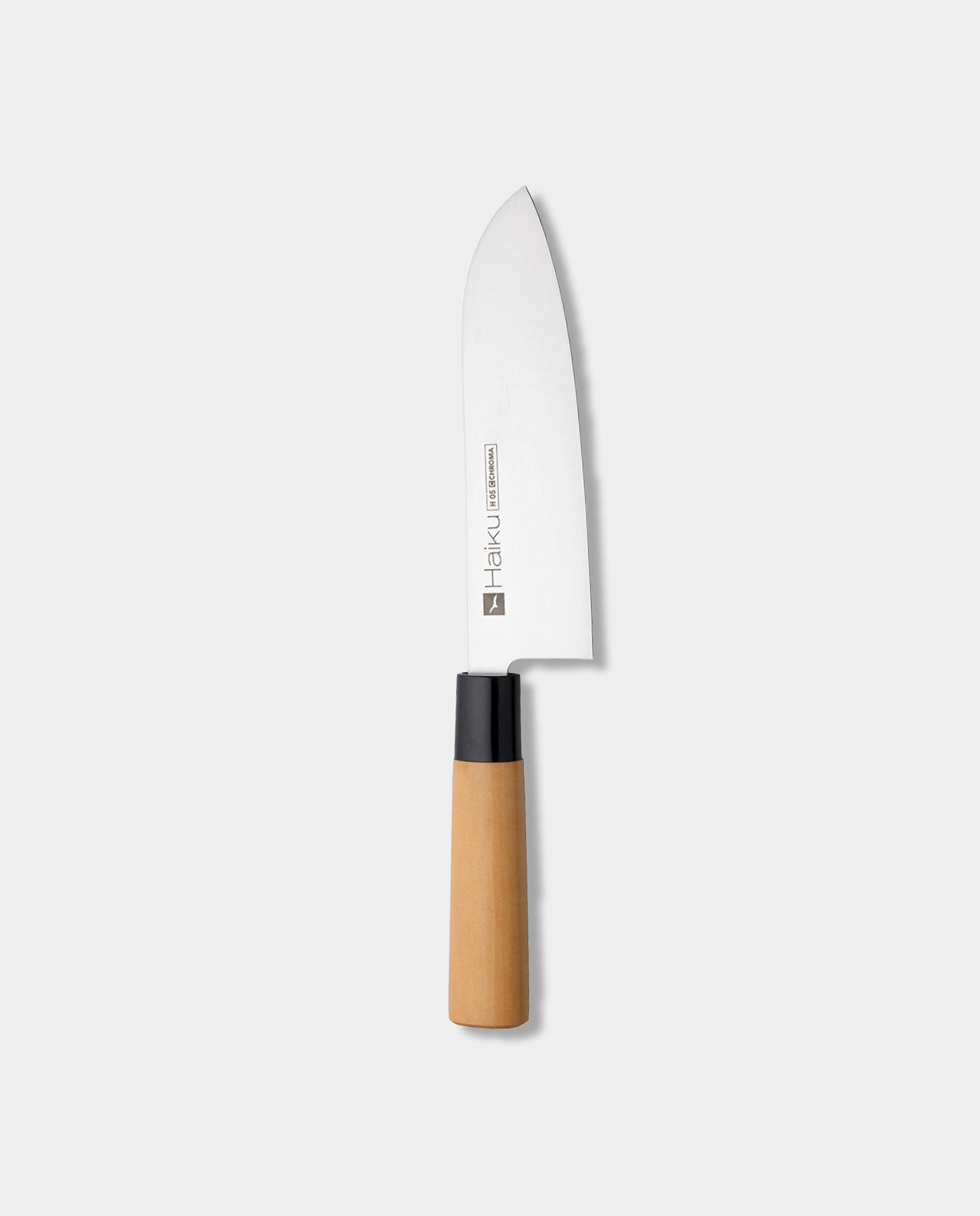 Santoku, japanischer Stahl, Honoki-Holzgriff
