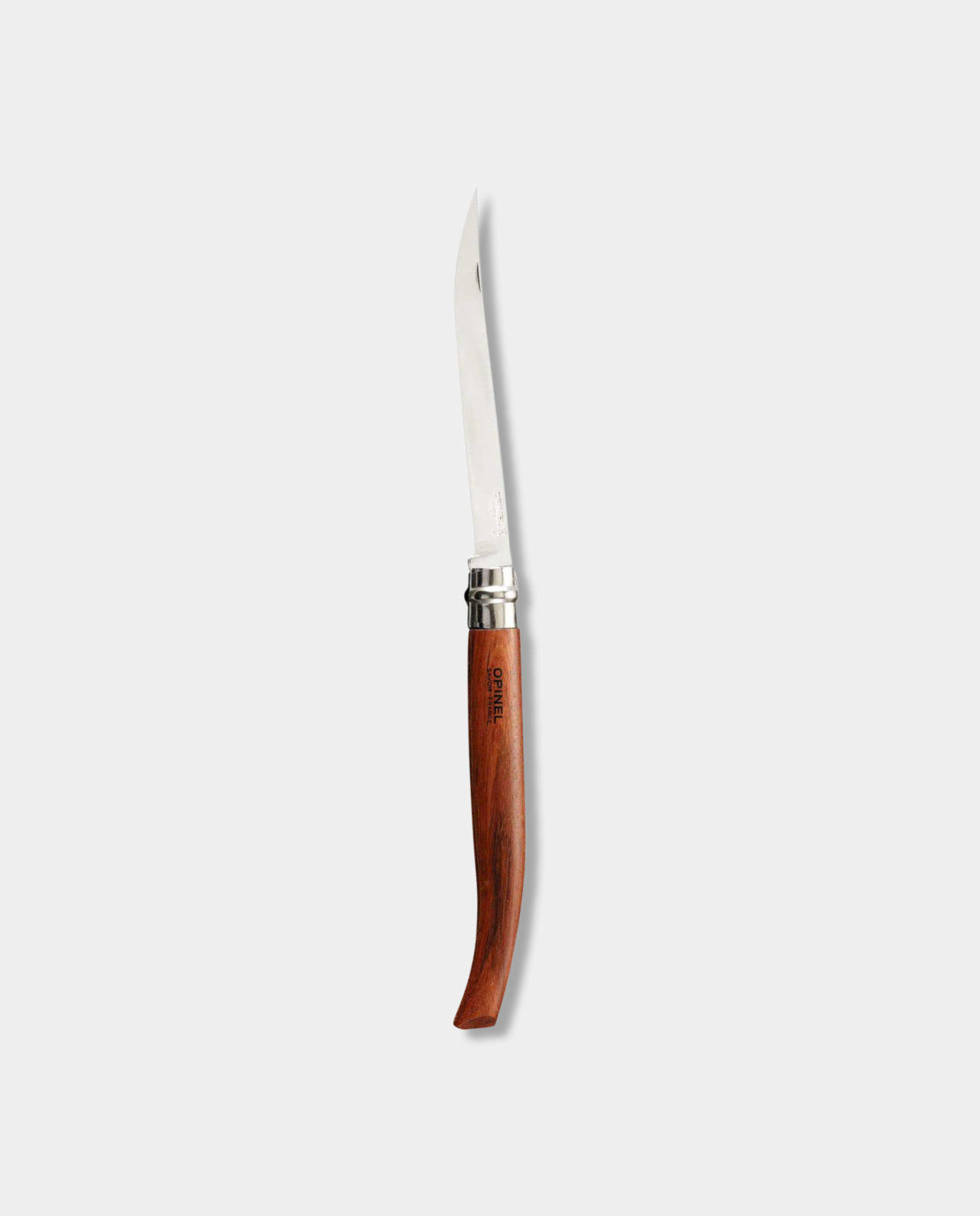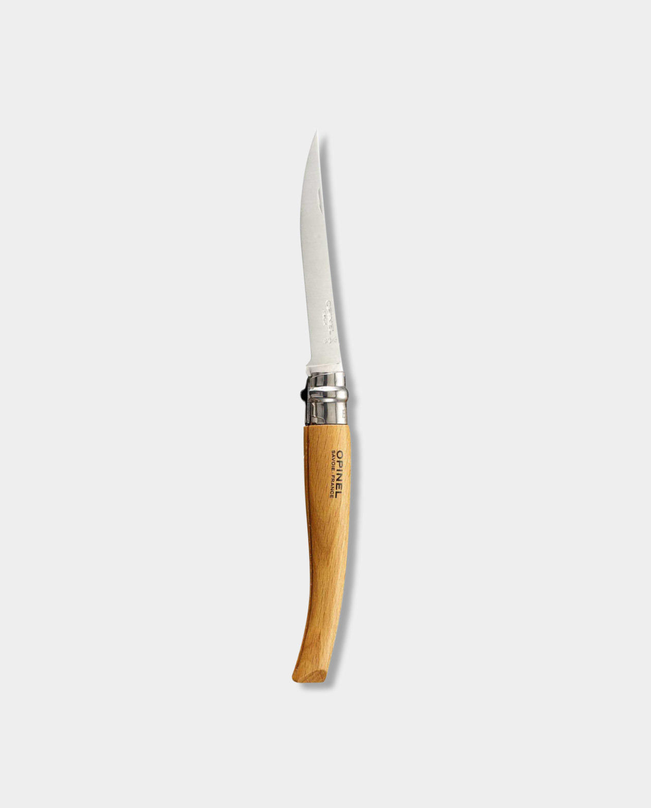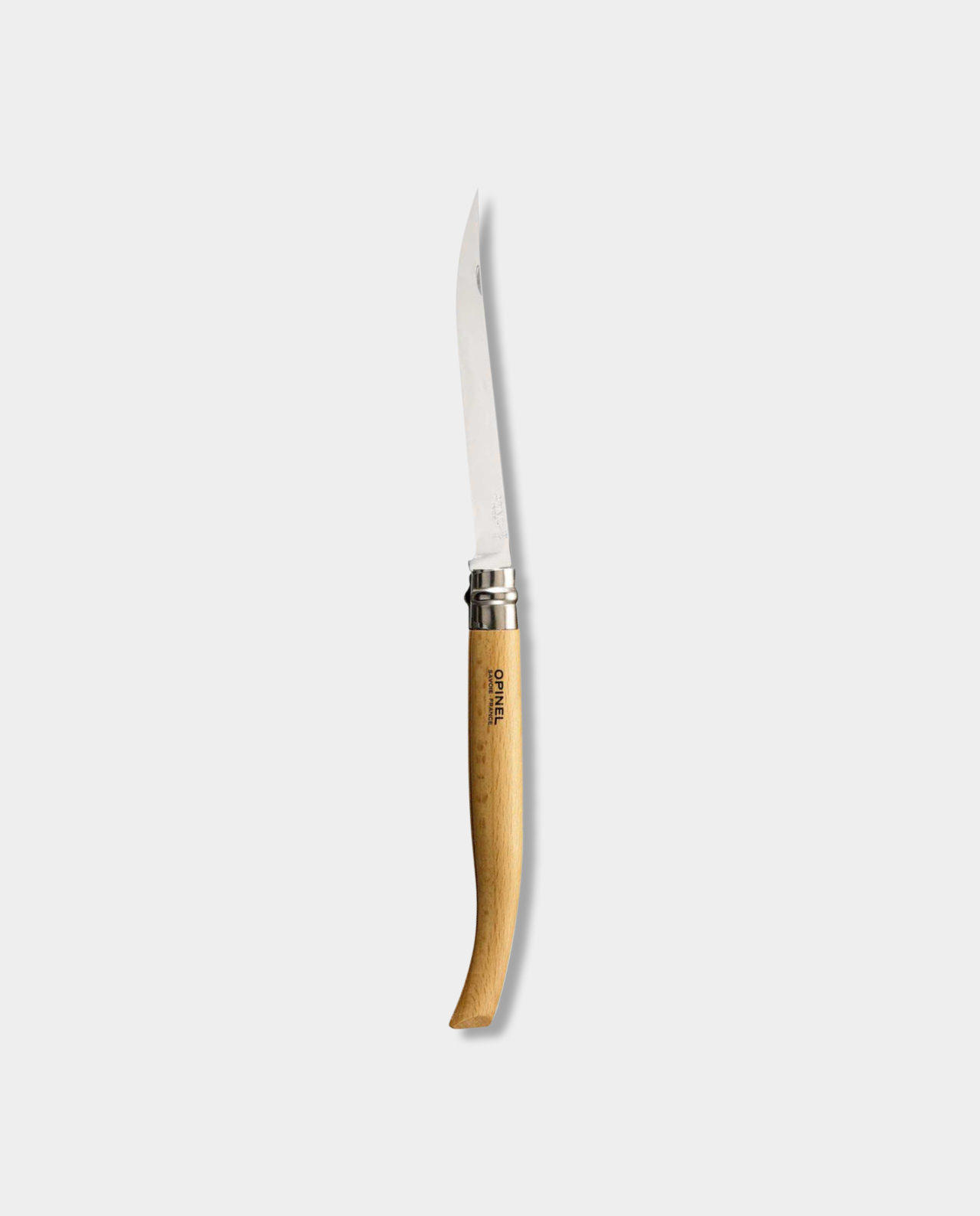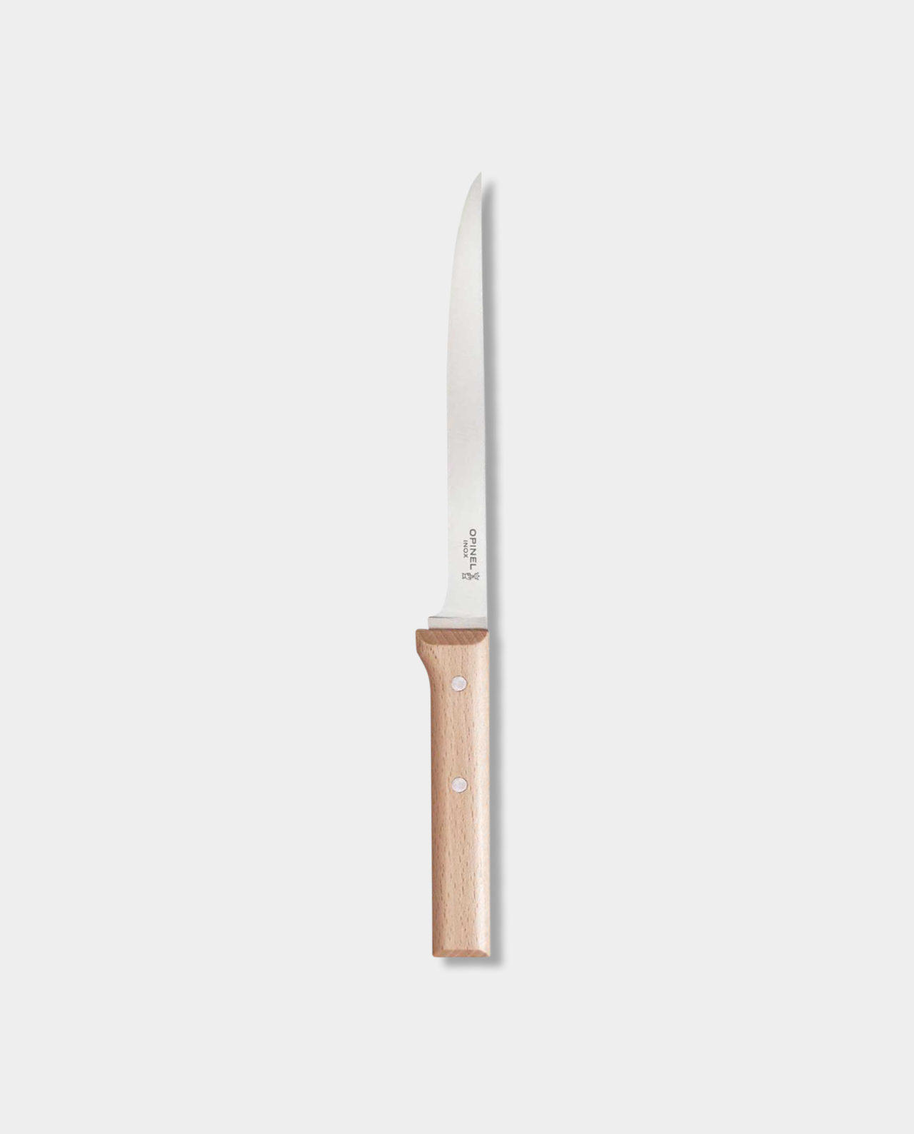 Der Griff aus Buchenholz mit farbigem Akzent erinnert an das bekannte Taschenmesser – die flexible Klinge aus rostfreiem Stahl macht das Filiermesser aus der Opinel Parallele POP Collection zu einem Helfer, der in keiner Küche fehlen sollte. Die 2 mm dünne und 18 cm lange Klinge erlaubt ein einfaches Filetieren von Fleisch und Fisch und schneidet auch bereits zubereitete Speisen ohne Probleme.
