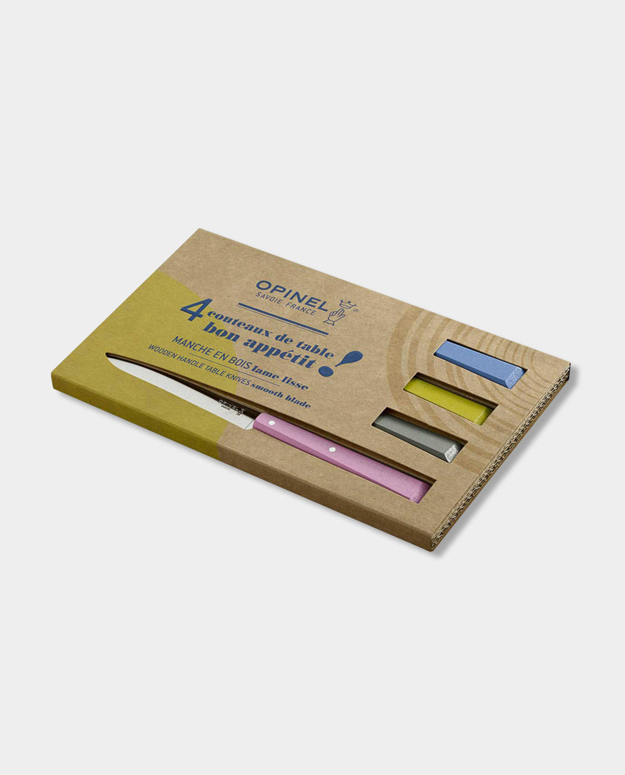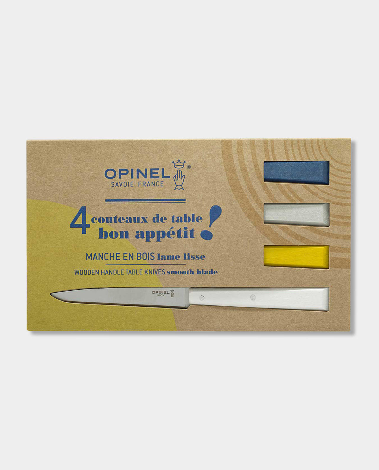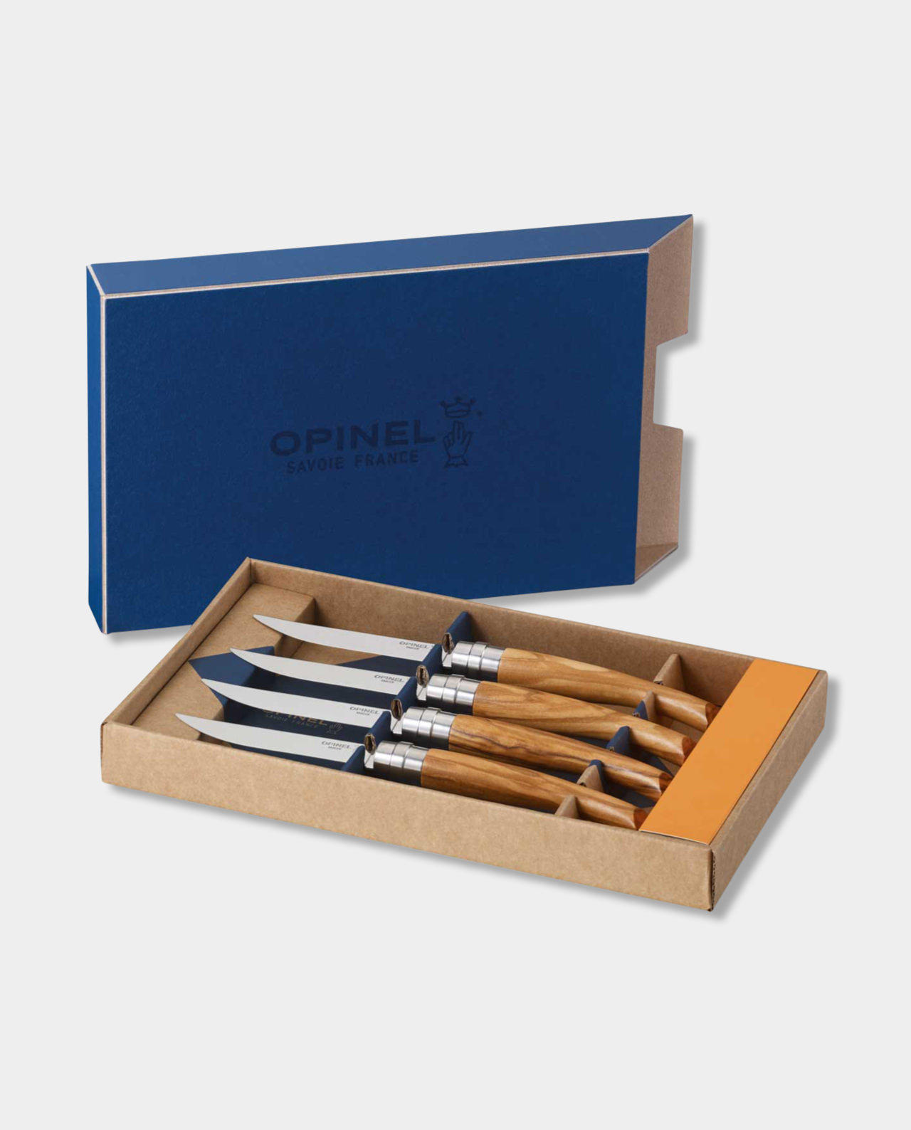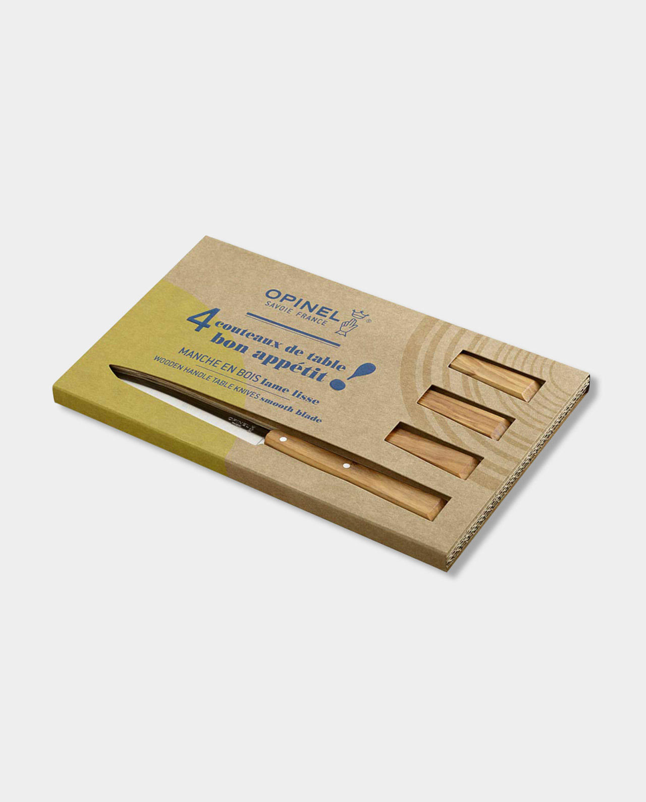 Abseits von den seit vielen Jahrzehnten bewährten Taschenmessern bietet Opinel mit der Serie Table Chic eine Kollektion stilvoller Tafelmesser an. Optisch sind diese Modelle an die schlanke Slim Line Serie angelehnt, verfügen jedoch, dem Einsatzzweck entsprechend, über eine feste Klinge. Die Bestandteile dieses Modells sind eine Klinge aus rostfreiem Edelstahl sowie ein Griff aus Olivenholz. Die Auslieferung erfolgt in einer Geschenkbox zu je 4 Messern.