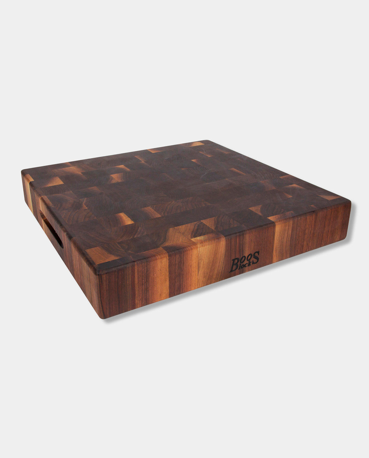 Hackblock, Stirnholz, beidseitig benutzbar mit seitlichen Griffmulden, Amerikanische schwarze Walnuss, NSF zertifiziert, 46 x 46 x 7,5 cm; 11 kg