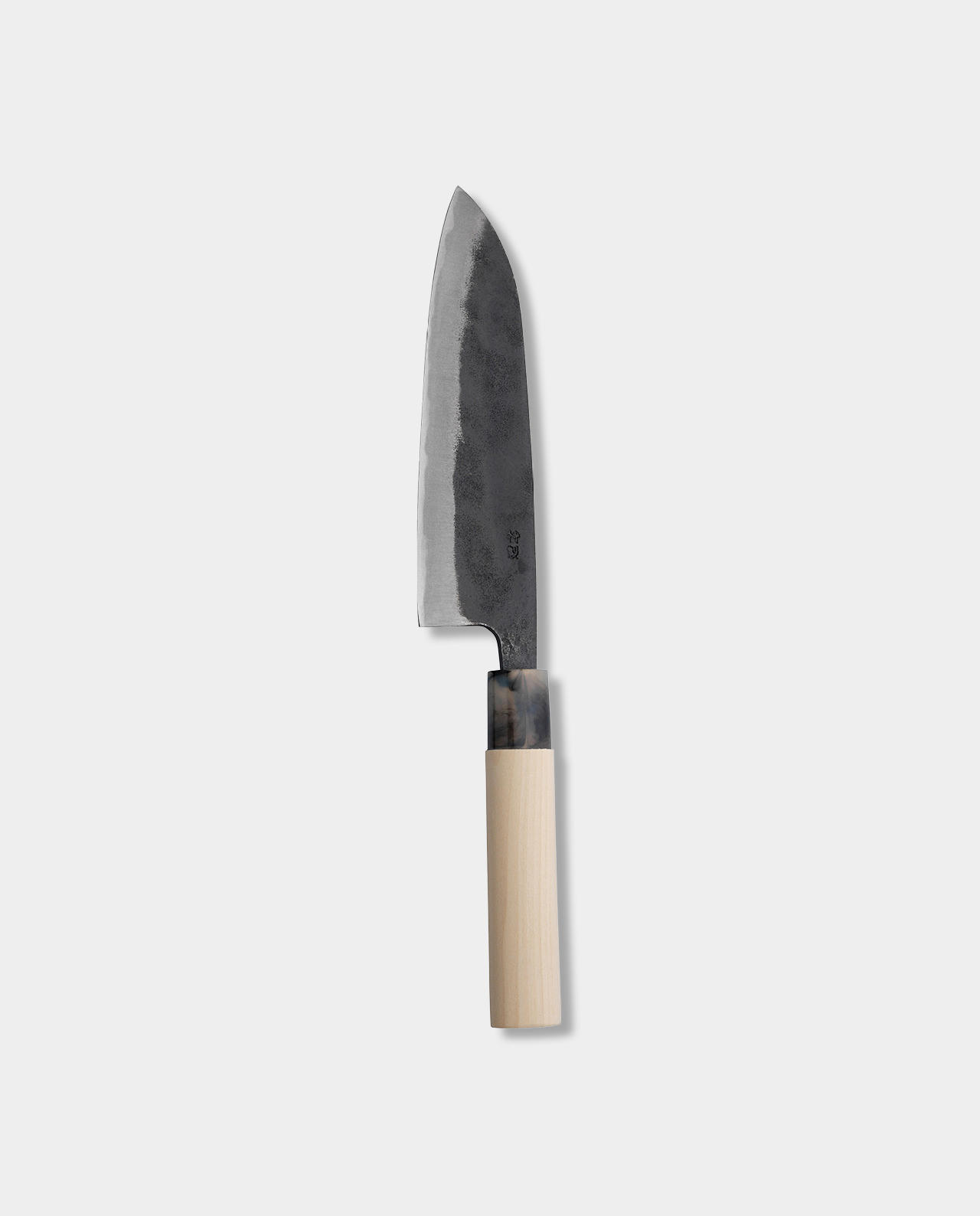 Santoku, Chroma, Japanisches Messer, SK-5 Stahl, 3 Lagen, handgeschmiedet, Kohlenstoffstahl, , nicht rostfrei, Griff Honoki-Holz