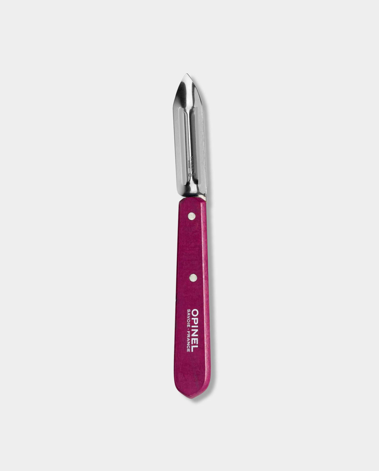 Mit dem Opinel Schälmesser No. 115 lassen sich Obst und Gemüse schnell und effizient schälen. Die doppelte Klinge aus rostfreiem Edelstahl ermöglicht die Verwendung für Rechts- und Linkshänder. Aufgrund des Griffs aus violett gefärbtem Buchenholz sollte das Messer nicht in der Spülmaschine gereinigt werden.