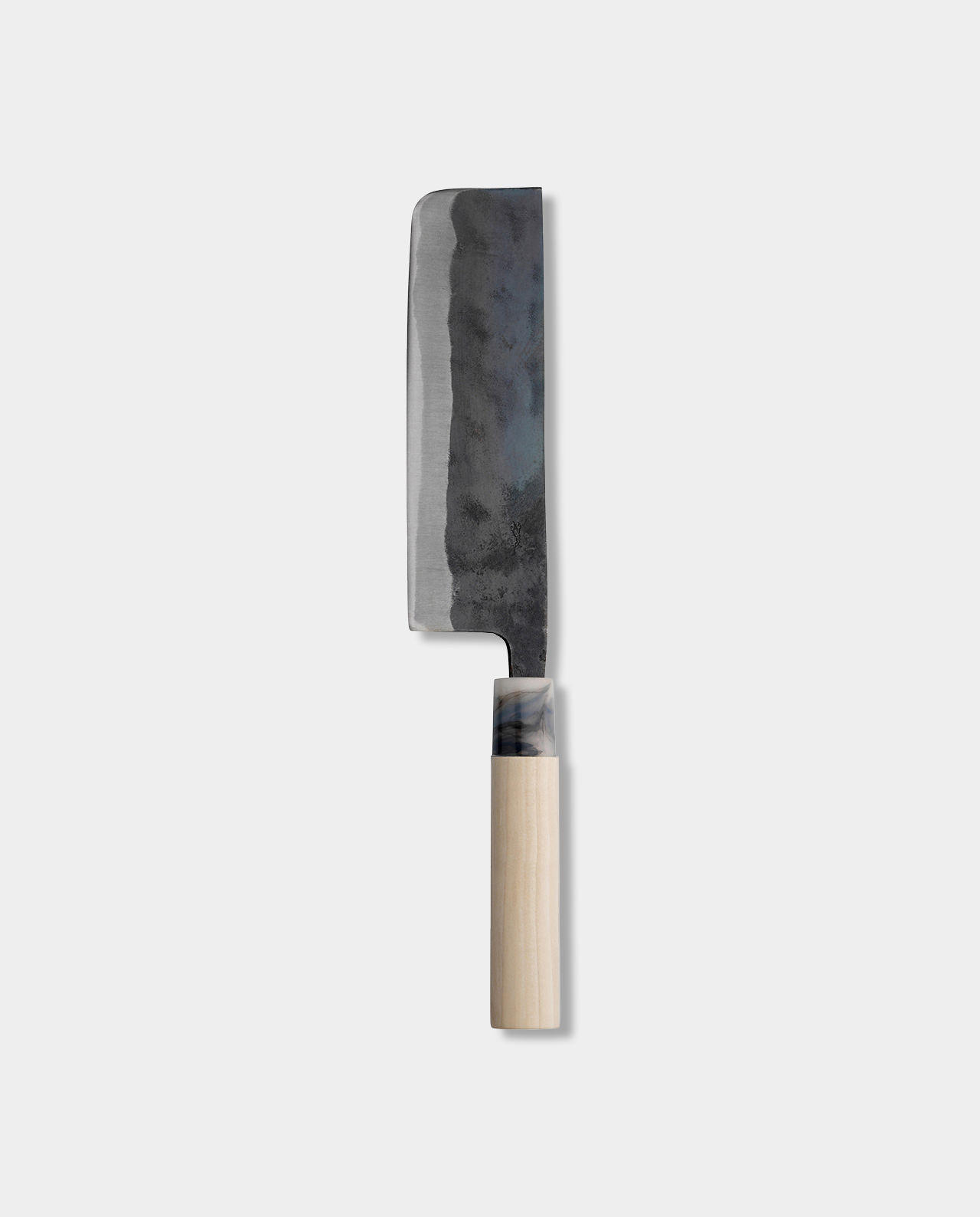Nakiri, Chroma, Japanisches Messer, SK-5 Stahl, 3 Lagen, handgeschmiedet, Kohlenstoffstahl, nicht rostfrei, Griff Honoki-Holz
