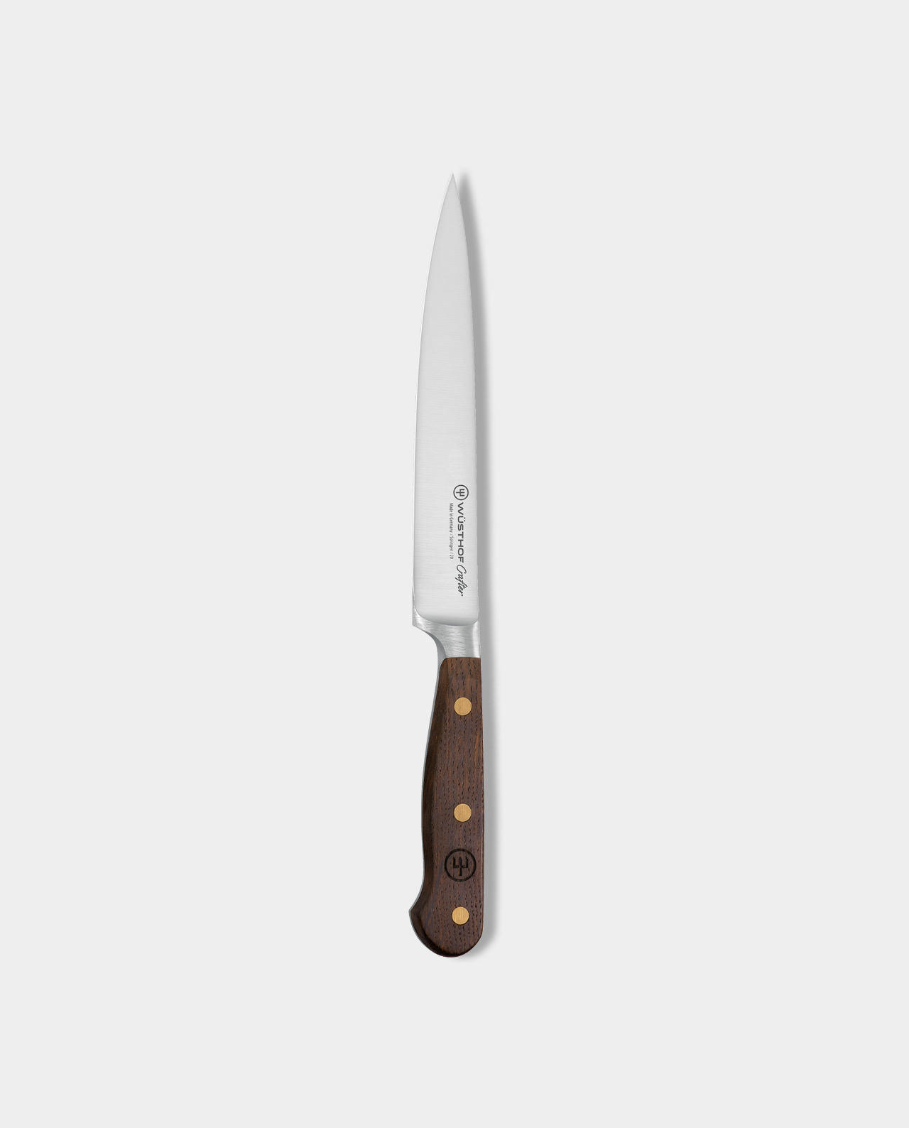 Die schmale, lange Klinge ist besonders geeignet für das dünne Aufschneiden von Schinken, Braten oder Fisch. Messerserie, die von traditionellen, geschickten Handwerkern inspiriert wurde. Entwickelt für den modernen Mann und die moderne Frau mit einer Leidenschaft für kunstvolles Handwerk. Dreifache Messingvernietung und ein voller Erl, um für erstklassige Haltbarkeit und Kontrolle zu sorgen. Die kräftig geräucherten Eichengriffe tragen das Wüsthof-Logo. Messer bitte nur von Hand spülen. Quality – Made in Germany / Solingen.