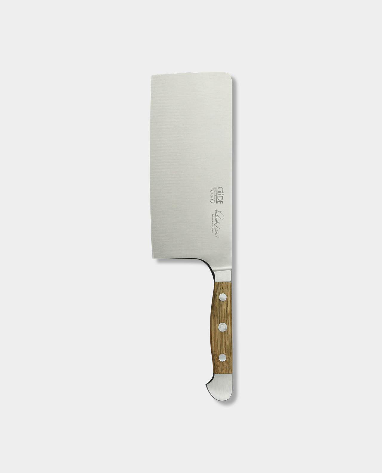 Die neue, breite Klinge eignet sich ideal zum Schneiden, Hacken, Wiegen und Zerteilen aller Arten von Lebensmitteln und erleichtert das sichere Führen des Messers. Der asiatische Halbkropf verringert das Gewicht des Messers und ermöglicht das Nachschärfen der gesamten Klinge. Messerserie, die von traditionellen, geschickten Handwerkern inspiriert wurde. Entwickelt für den modernen Mann und die moderne Frau mit einer Leidenschaft für kunstvolles Handwerk. Dreifache Messingvernietung und ein voller Erl, um für erstklassige Haltbarkeit und Kontrolle zu sorgen. Die kräftig geräucherten Eichengriffe tragen das Wüsthof-Logo. Messer bitte nur von Hand spülen. Quality – Made in Germany / Solingen.