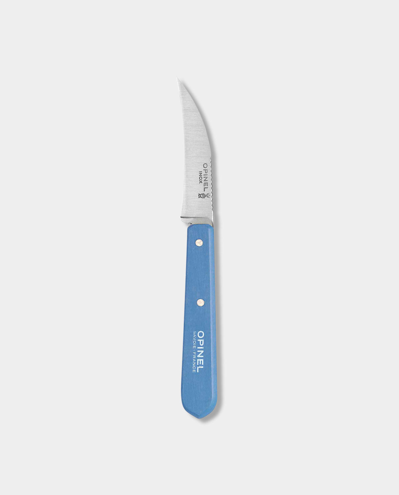 Mit dem Opinel Schälmesser Nr. 115 lassen sich Obst und Gemüse schnell und effizient schälen. Die doppelte Klinge aus rostfreiem Edelstahl ermöglicht die Verwendung für Rechts- und Linkshänder. Aufgrund des Griffs aus hellblau gefärbtem Buchenholz sollte das Messer nicht in der Spülmaschine gereinigt werden.