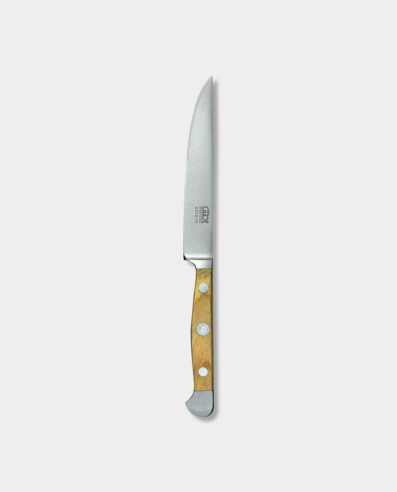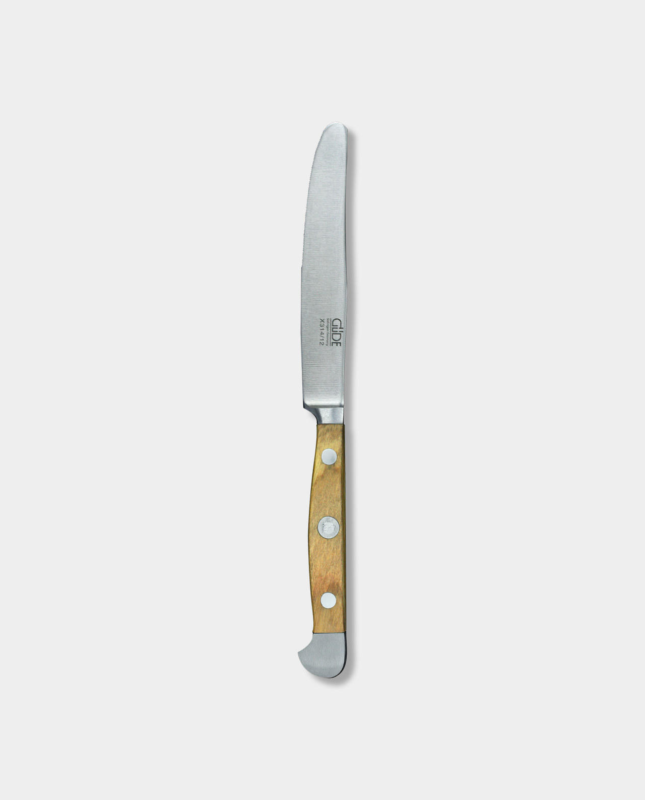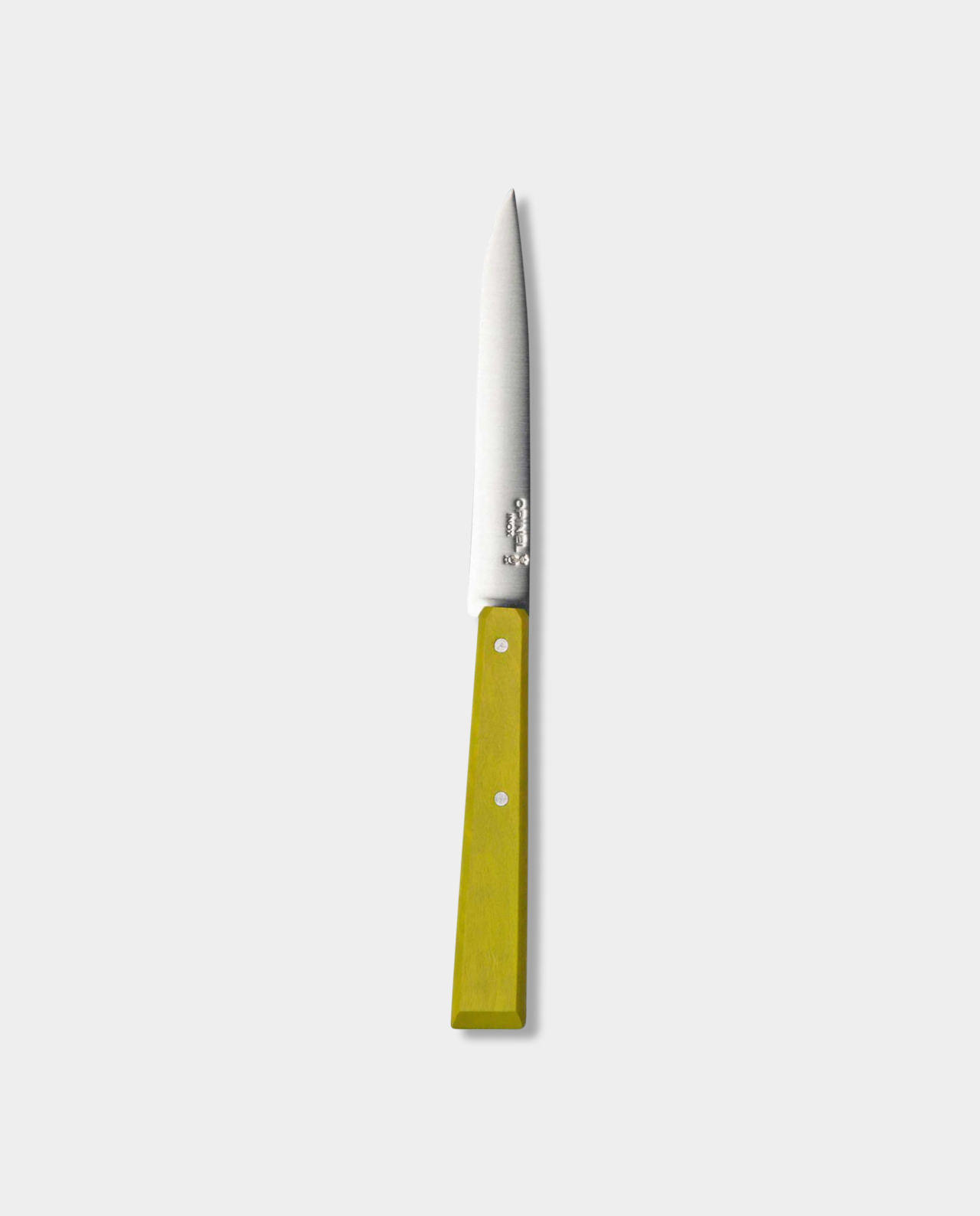 Tafelmesser aus der Opinel Messerserie Bon Appétit SOUTH SPIRIT. Die rostfreie Klinge aus 12C27-Stahl ist kombiniert mit einem Griff aus dekorativem Olivenholz. Damit die Qualität erhalten bleibt, sollte das Messer nur von Hand gereinigt werden.