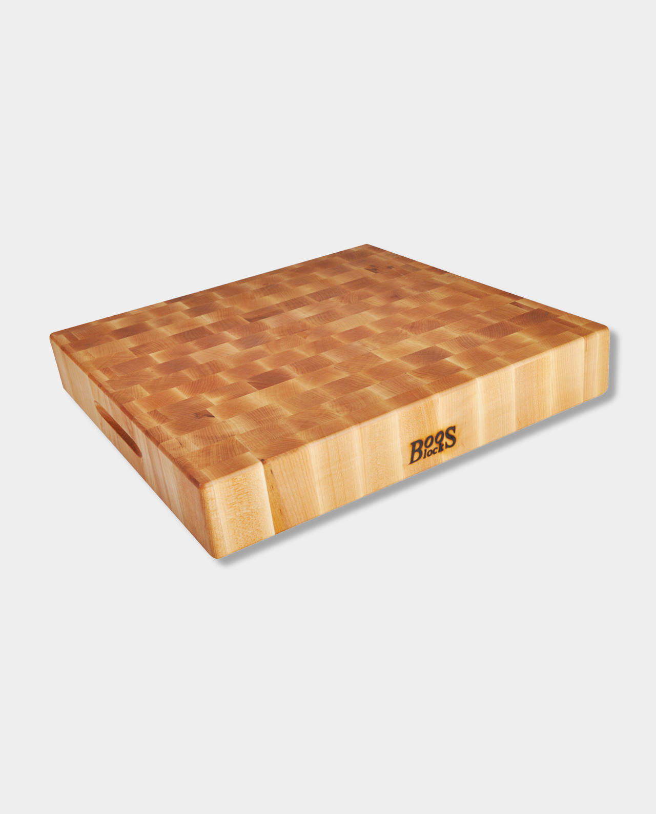 Hackblock, Stirnholz, beidseitig benutzbar mit seitlichen Griffmulden, Nordamerikanisches Ahorn-Hartholz, 46 x 46 x 7,5 cm; 11,8 kg