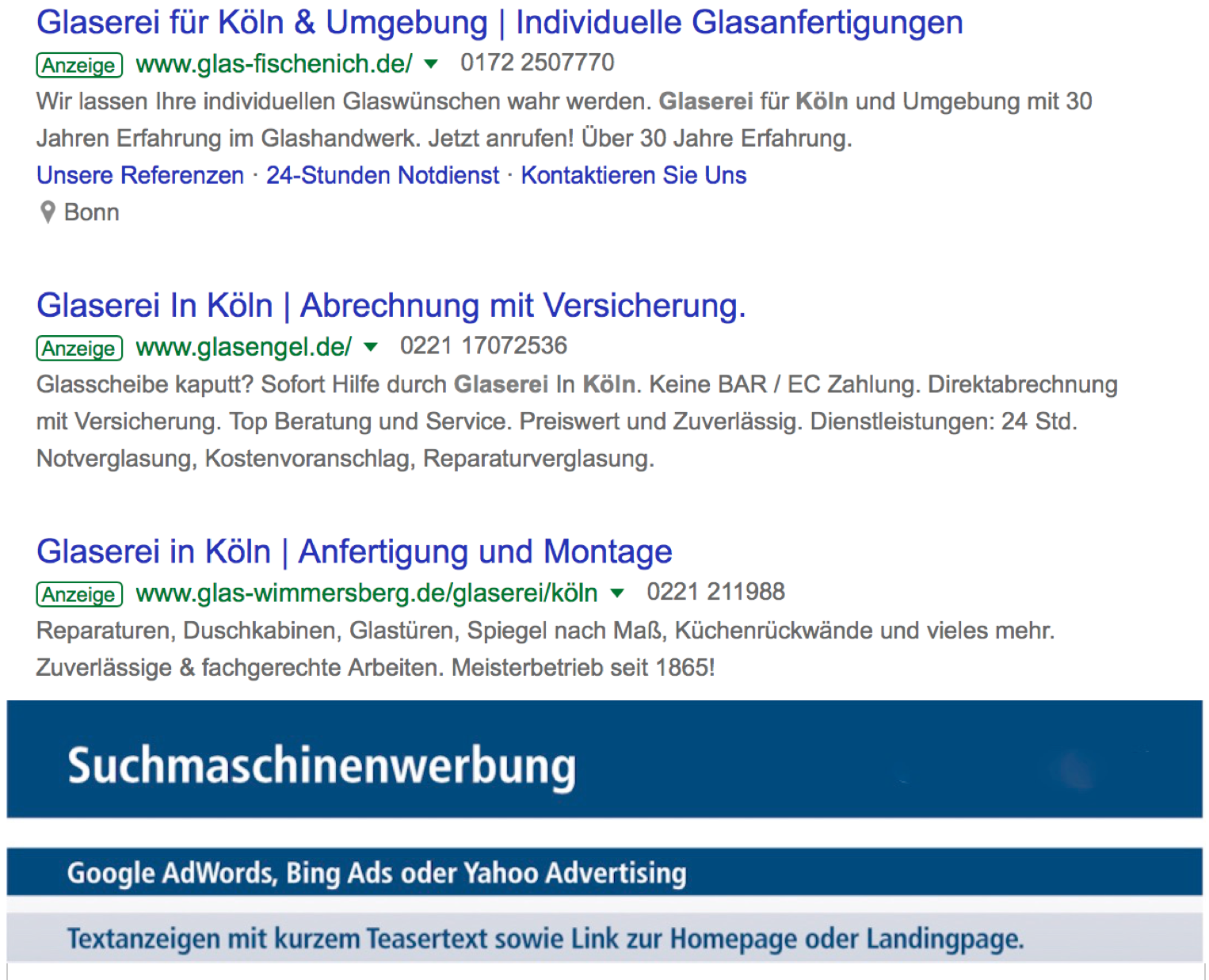 Erhöhen Sie den Werbedruck durch Suchmaschinenwerbung. Durch Textanzeigen - Google Adwords präsentieren Sie sich optimal in Ihrer Branche.