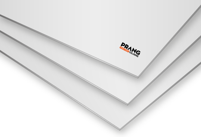 Hartschaumplatte, 3 mm Die Hartschaumplatten von Prang Cologne in Köln sind flexibel in Innen- sowie Außenbereichen einsetzbar, denn sie bestehen aus dem Kunststoff PVC. Dieser sorgt dafür, dass die Platten eine hohe Festigkeit aufweisen, einfach zu verarbeiten sind und gleichzeitig ein leichtes Gewicht haben. Somit sind die Hartschaumplatten optimal für Werbeträger, Bilder und Grafiken geeignet. Sowohl Höhe als auch Breite der Platten kann ab einem Mindestformat von 10 cm x 10 cm frei gewählt werden. Dabei kann entweder auf Format oder auf Kontur geschnitten werden, so sind auch andere Formen als viereckig möglich. Das verwendete Material ist weißer Hartschaum mit einer Dicke von 3 mm. Auf Wunsch können die Platten mit 4 mm dicken Bohrungen in den Ecken erworben werden, welche eine einfache Anbringung ermöglichen. Bedruckt werden die Platten entweder einseitig 4/0-farbig oder beidseitig 4/4-farbig, je nachdem, ob Sie nur die Vorder- oder auch die Rückseite nutzen wollen. Durch die individuelle Bedruckung sind die Hartschaumplatten vielseitig einsetzbar. Zudem sind sie robust und weisen eine hohe Haltbarkeit auf. Das macht sie ideal für Display-Anwendungen jeglicher Art, wie zum Beispiel als Wandverkleidung oder Raumteiler, für Messestände, als Werbeträger oder auch als Leitsystem.