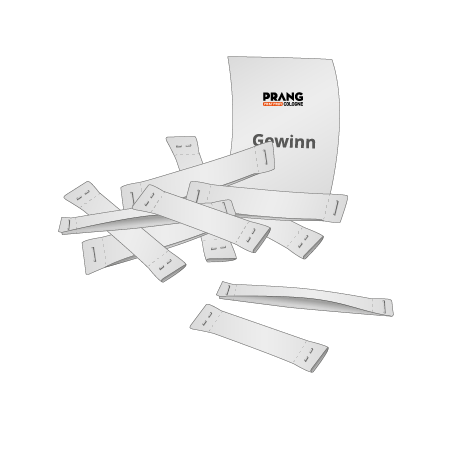 Röllchenlose Individualdruck Schon fast 100 Jahre alt, aber noch immer Bestseller - die Röllchenlose von Prang Cologne in Köln. Das liegt sicher an ihrer Einfachheit, am Rascheln in der Losbox und an der Spannung beim Öffnen der Lose. Wählen Sie im Kalkulator die Anzahl unterschiedlicher Eindrucke aus (z.B. 2 Stück - Gewinne und Nieten) und teilen Sie uns in den Druckdaten mit, wie viele Lose Sie je Version bestellen möchten. Die Lose haben offen ein Format von 40 x 46 mm und werden sortenrein zu 100 Stück im Beutel geliefert, sodass Sie jederzeit die Kontrolle über die Anzahl Nieten und Gewinne in Ihrer Verlosung behalten. Haben Sie Wünsche, die Sie hier nicht abbilden können? (mehr als 4 Versionen, individuelle Codes, gemischte Lieferung,...) Kein Problem! Kontaktieren Sie uns über unser Kontaktformular und wir erstellen Ihnen gerne Ihr individuelles Angebot.