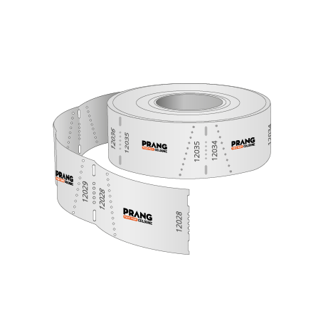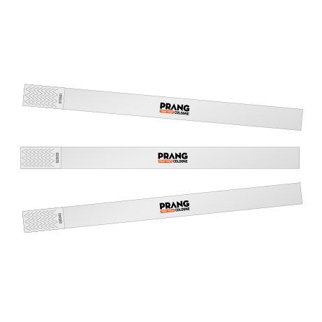 Tyvek-Bänder bedruckt Die praktischen Einlassbänder aus papierähnlichem und reißfestem Tyvek von Prang Cologne in Köln werden mit einem Klebestreifen verschlossen. Beim Öffnen des Klebestreifens wird die Perforation am Band zerstört. Somit sind unsere Tyvek-Bänder genau so sicher wie Einlassbänder mit Plastik-Verschluss und nicht übertragbar. Sie haben die Auswahl aus 16 Bandfarben und 2 Bandbreiten. Der Druck ist in schwarz. Sollten Sie mehrere Eindrucke oder Bandfarben wünschen, wählen Sie die Anzahl einfach im Kalkulator aus und teilen Sie uns die Details mit den Druckdaten mit. Weitere Informationen finden Sie in den Layoutvorlagen im Downloadbereich. Haben Sie Wünsche, die Sie hier nicht abbilden können? Schicken Sie uns diese einfach über das Kontaktformular und wir machen Ihnen gerne ein individuelles Angebot.