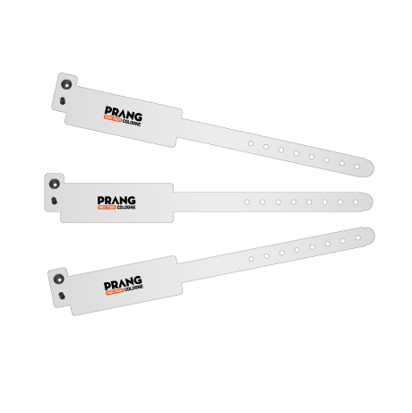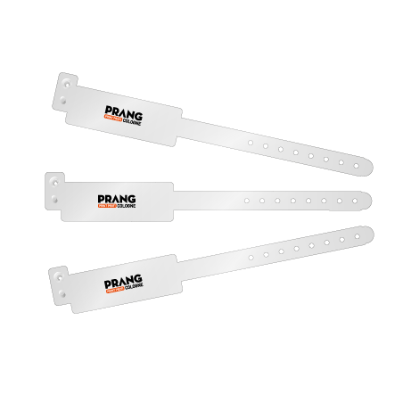 Einlassbänder Comfort unbedruckt Die angenehmen Einlassbänder Comfort von Prang Cologne in Köln sind 100% made in Germany. Während andere Bänder meist aus Asien stammen und in Deutschland bedruckt werden, musste unser Einlassband Comfort nicht um die halbe Welt fliegen. Das Band besteht aus Polyethylen und wird durch einen Plastikverschluss verschlossen und kann nicht wieder geöffnet werden. Sie haben die Auswahl aus 12 Farben und 2 Bandbreiten. Verkaufseinheiten sind Kartons zu 500 Stück.