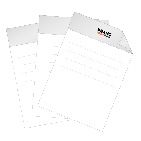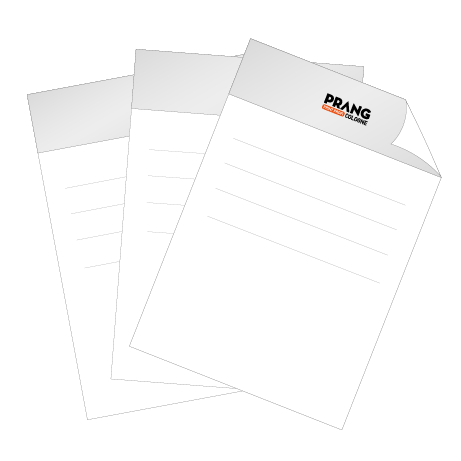 Bedruckbare Blöcke ohne Deckblatt von Prang Cologne in Köln. In verschiedenen Größen und Variationen erhältlich. Als Geschenk, Werbeträger, für das Büro oder den Privatgebrauch. Die Blöcke von Prang Cologne in Köln lassen sich individuell bedrucken, somit sind sie nicht nur nützlich sondern auch raffiniert einsetzbar. Egal ob privat oder geschäftlich, die Blöcke eignen sich hervorragend für wichtige Notizen sowie Aufschriebe und sind ideal als Geschenk, Giveaway oder Büroausstattung. Durch die individuelle Bedruckung erhält man einzigartige und unvergleichbare Blöcke, die überall eine gute Figur machen. Die Blätter des Blockes sind 4/0-farbig einseitig bedruckbar. Ein kostenloser Basis-Datencheck der Druckdaten ist inklusive. Werden die Blöcke beispielsweise mit dem Firmennamen und -logo sowie einem Slogan bedruckt, sind sie der ideale Werbeträger - egal ob als Büroausstattung oder als Giveaway auf Messen. Auch für Privatpersonen ist die individuelle Bedruckung interessant, so können beispielsweise Blöcke mit einem eigenen Design bedruckt werden. Außerdem kann der Block ein ganz besonderes und persönliches Geschenk darstellen. Für jeden Verwendungszweck ist ein passender Block dabei, denn er steht in verschiedensten Variationen zur Verfügung. Folgende Größen sind erhältlich: DIN A7, DIN A6, DIN A5, DIN A4, DIN A3, DIN A2, DIN A1, DIN lang, 29,7 cm x 29,7 cm, 21 cm x 21 cm, 14,8 cm x 14,8 cm, 14,8 cm x 6,2 cm sowie 6,2 cm x 14,8 cm. Bei der Seitenzahl kann zwischen 10, 25, 50, 100 oder 200 Blatt gewählt werden. Die Blöcke sind sowohl im Hoch- als auch im Querformat erhältlich. Das Papier besteht aus 80 g Naturpapier pro Quadratmeter. Dieses lässt sich gut beschreiben und bestempeln. An der kurzen Seite des Blockes befindet sich eine Leimbindung (kopfgebunden). Als Rückpappe dient 1 mm starke graue Pappe.