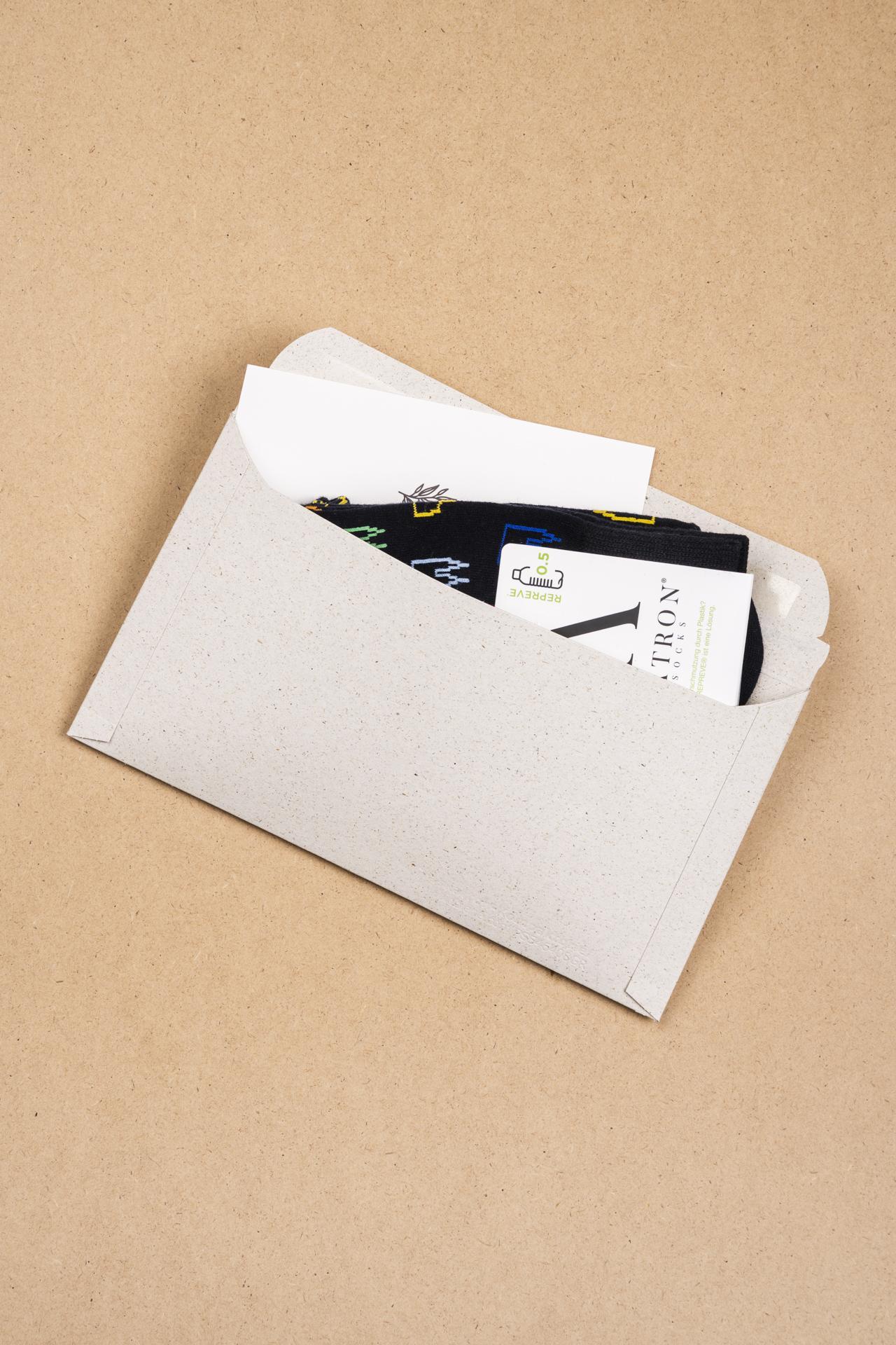 Kleiner Gruß mit Kölner Socken, 1 Stk. Umschlag mit buntem Sockenpaar und persönlicher Note.* Kleine Aufmerksamkeiten erhalten die Freundschaft, wie auch die Geschäftsbeziehung! Ein kleiner Gruß mit Kölner Socken von Patron Socks, kann der/ dem Empfänger:in ein Lächeln aufs Gesicht zaubern. Das Design der Socken verstärkt zudem die Liebe zu der großartigen Domstadt! Stärke die Beziehung zu deinem Team, Kooperationspartner:innen oder Kund:innen durch einen kleinen Gruß im Alltag. Sockengröße: 36-40 Noch eine persönliche Botschaft dazu? Wähle aus unseren Upgrades das passende Design und die Art deiner Botschaft aus. Du kannst wählen zwischen: