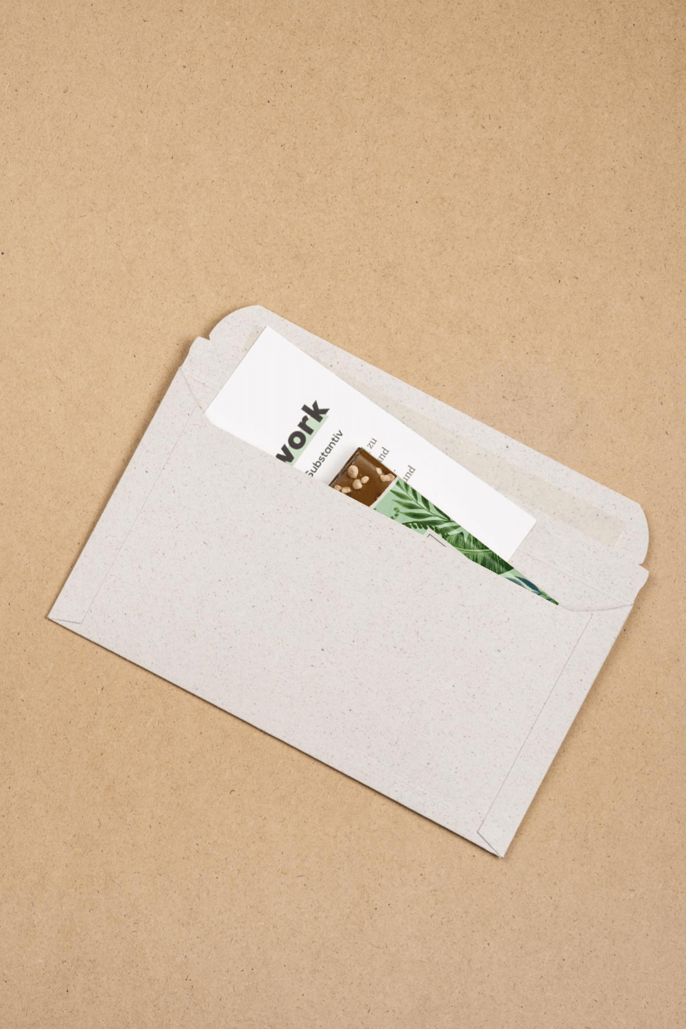 Kleiner Gruß mit veganer Schoki, 1 Stk. Umschlag mit einer Tafel vegane Schokolade “Red Berries” und persönlicher Note.* Kleine Aufmerksamkeiten erhalten die Freundschaft, wie auch die Geschäftsbeziehung! Ein kleiner Gruß mit leckerer Schoki von Raccoon, kann der/ dem Empfänger:in ein Lächeln aufs Gesicht zaubern. Stärke die Beziehung zu deinem Team, Kooperationspartner:innen oder Kund:innen durch einen kleinen Gruß im Alltag. Noch eine persönliche Botschaft dazu? Wähle aus unseren Upgrades das passende Design und die Art deiner Botschaft aus. Du kannst wählen zwischen: